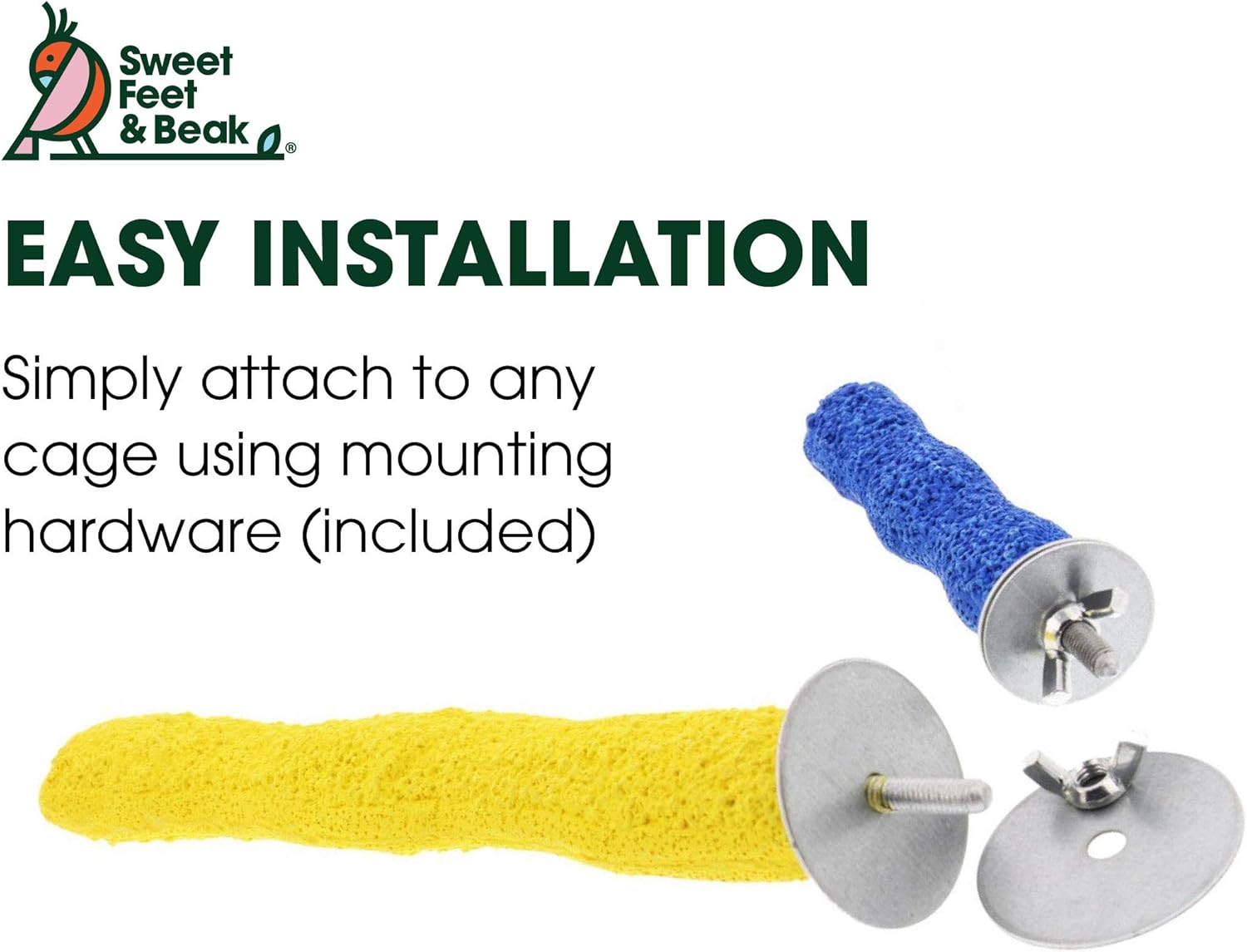 - QUALITY & COMFY BIRD PERCHES: Durable concrete perch with universal bolt mounts - easy install for both horizonal and vertical bars. Parakeets, Cockatiels, Conures.