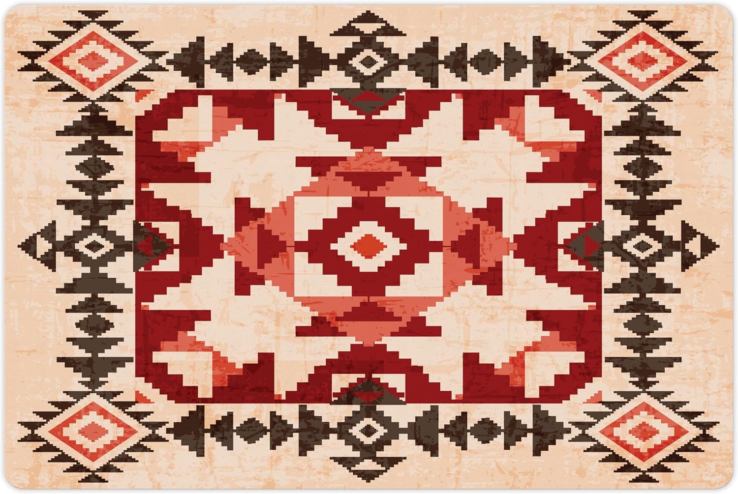 Lunarable Tribal Pet Mat for Food and Water, Original National Heritage Maya Pyramids Local Region Esoteric Myth Motive, Non-Slip Rubber Mat for Dogs and Cats, 18" X 12", Maroon