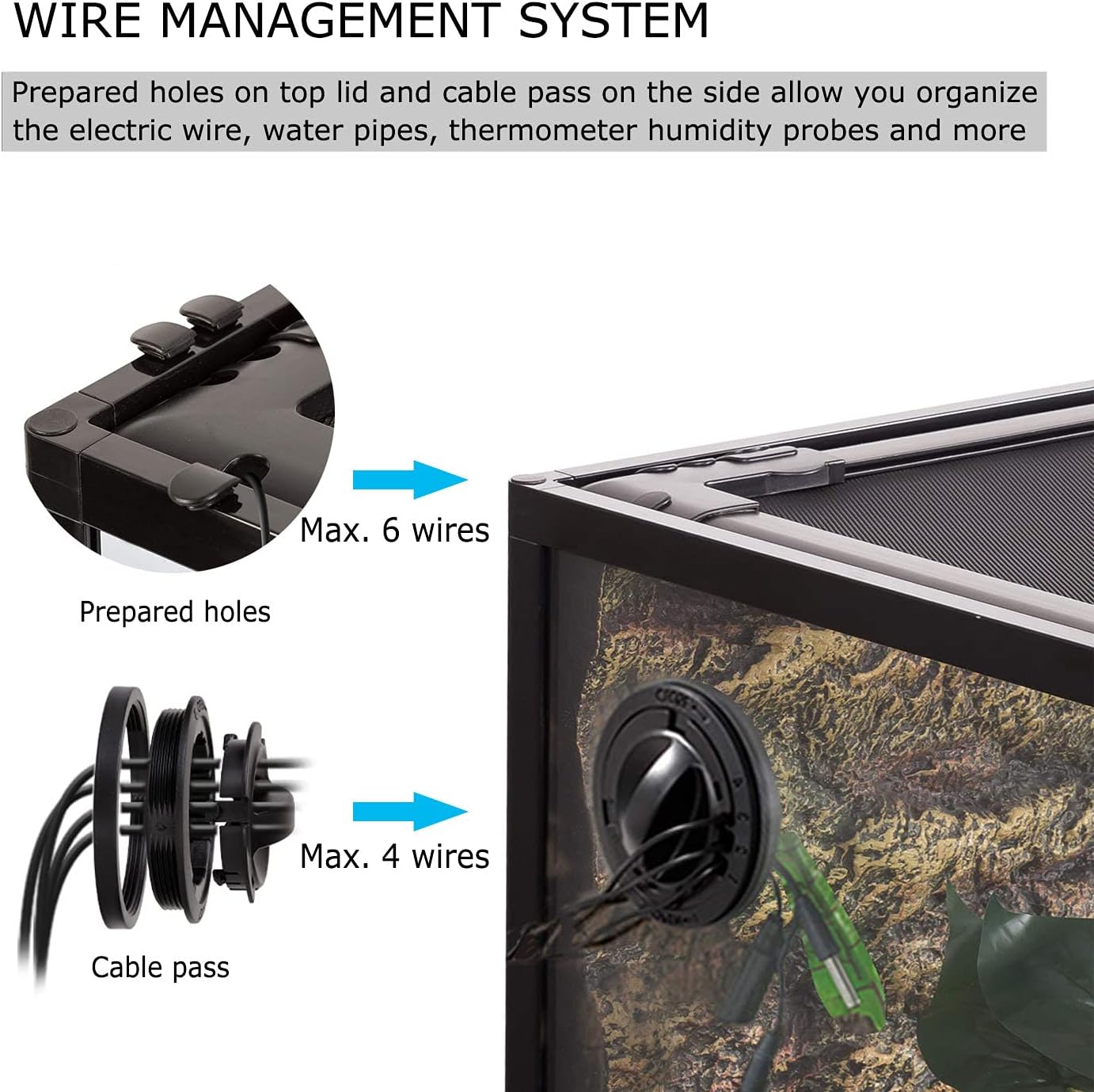 - 【WATERPROOF RAISED BOTTOM】Raised bottom plate provides adequate ventilation and enough spaces for accessories such as UTH(under tank heater). And waterproof bottom provides a comfortable living environment for amphibians.