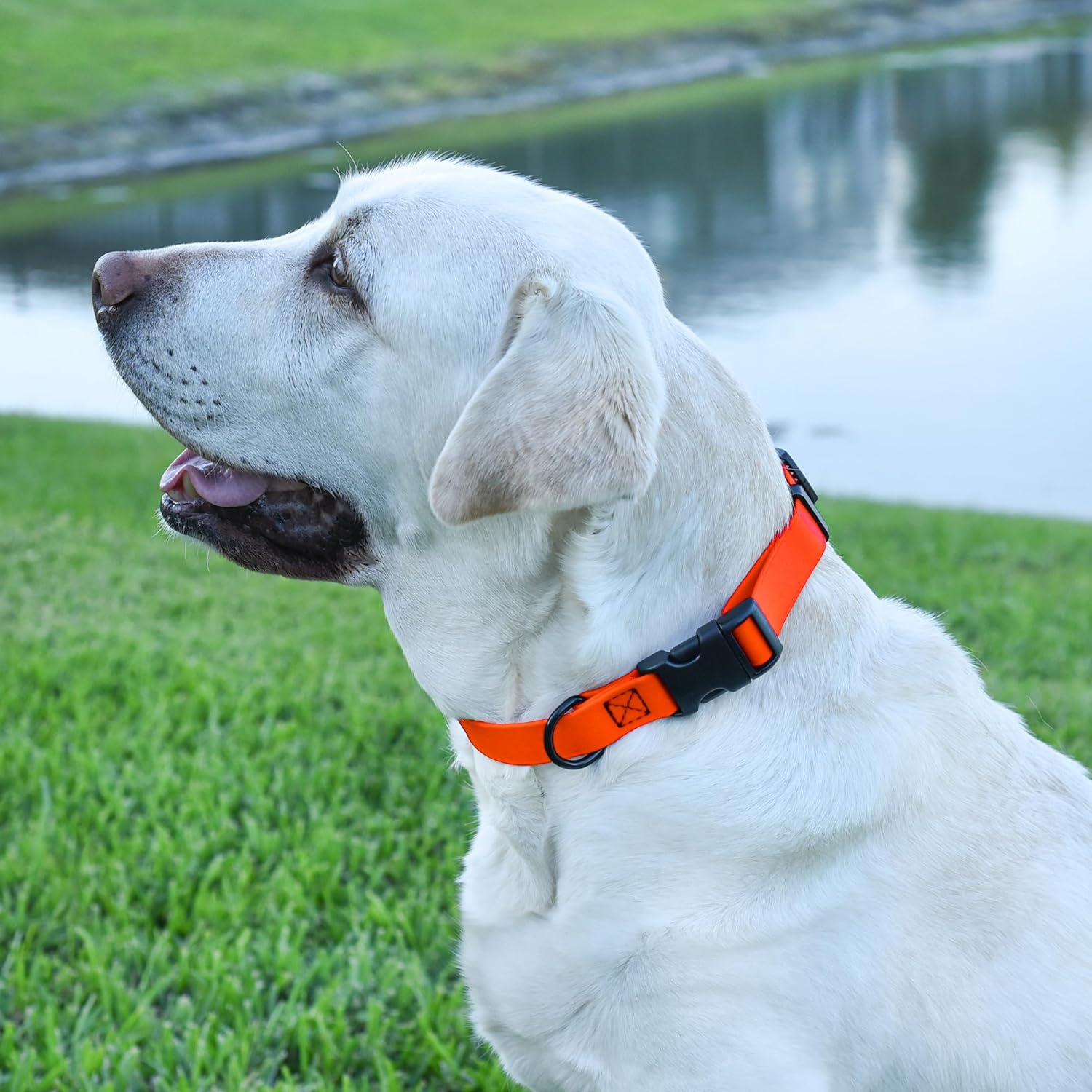 Dogline Biothane Waterproof Dog Collar with Quick Release Buckle Strong Coated Nylon Webbing with Odor- Proof for Easy Care Easy to Clean Fits Small Medium or Large Dogs, Orange 3/4" W 12-19" L