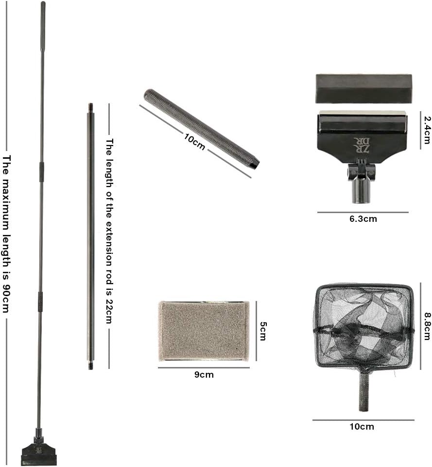 - High-quality materials: Our aquarium scrubber is equipped with a stainless steel extension rod and blade. Even if they are immersed in water for a long time, they will not rust. The blade is sharp but does not damage the glass, which is representative of durable products
