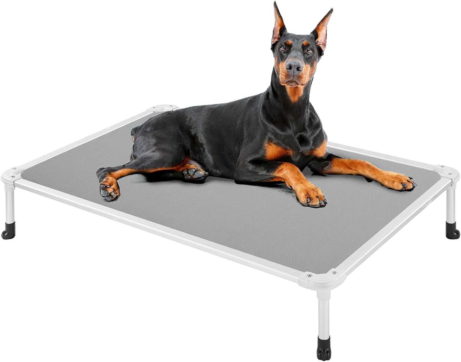 Veehoo Chew Proof Elevated Dog Bed - Cooling Raised Pet Cot - Silver Aluminum Frame and Durable Textilene Mesh Fabric, Unique Designed No-Slip Feet for Indoor or Outdoor Use, Grey, X-Large, CWC2003