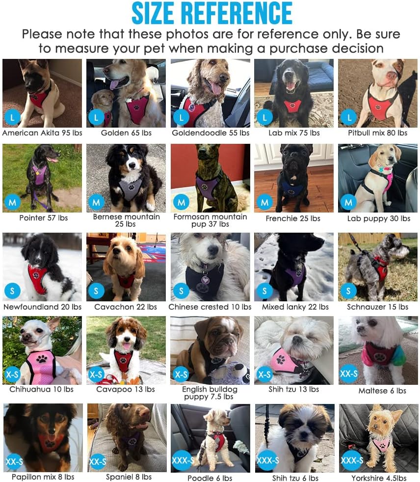 - 【6 Sizes Available for Great Fit】--- Our seatbelt for dogs in car offer multiple sizes from XXX-small to large, ensuring the perfect fit for your dog. Please refer to the measurement instructions in the image to measure your dog's neck and chest before purchasing. IF BETWEEN SIZES, CHOOSE IT BASE ON CHEST SIZE!