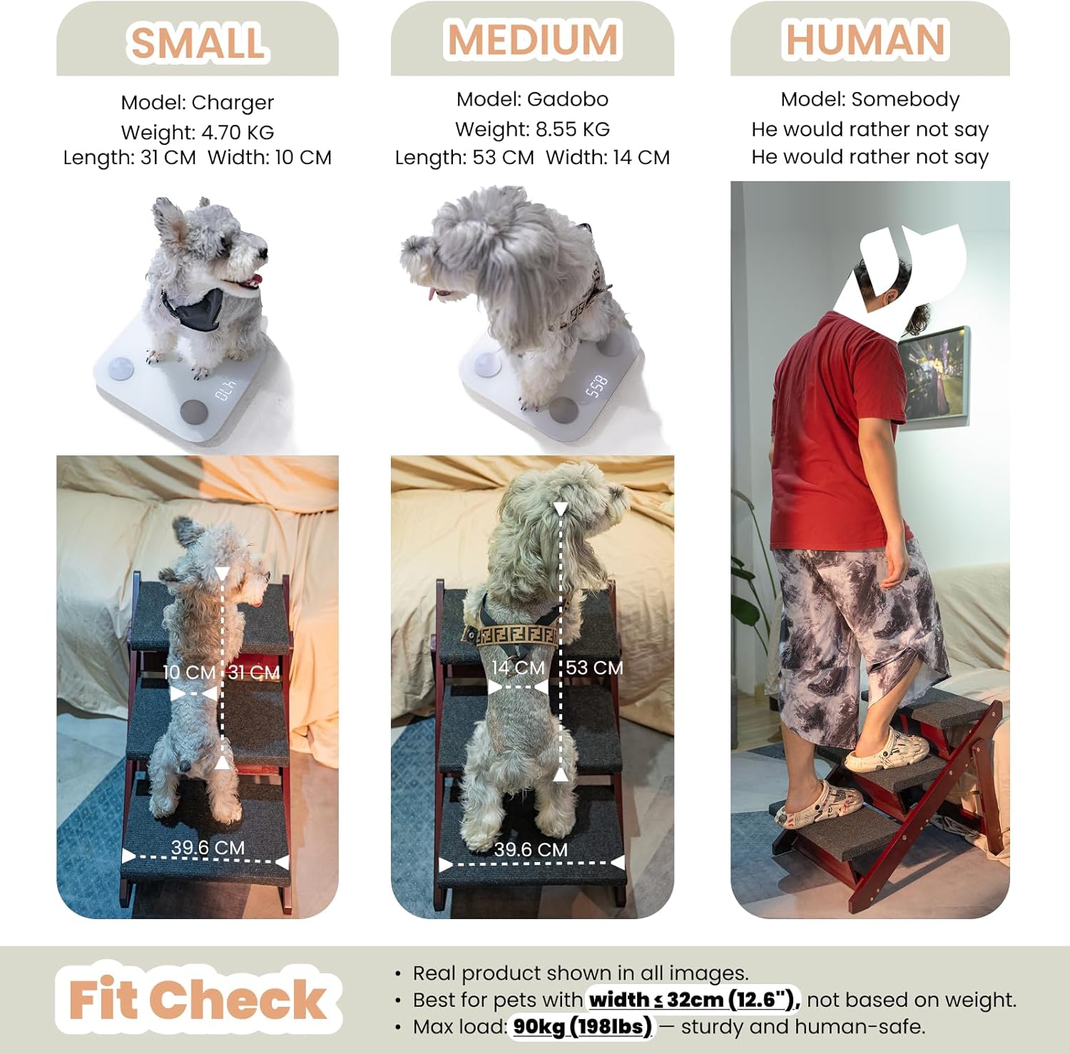 MEWANG Wooden Pet Stairs/Pet Steps - 3-in-1 Foldable Stairs & Ramp for Beds and Cars - Portable Dog/Cat Ladder Up to 220 Pounds - Great for Small and Older Animals(Brown) (24.8" L x 17.2" W x 19.5" H)
