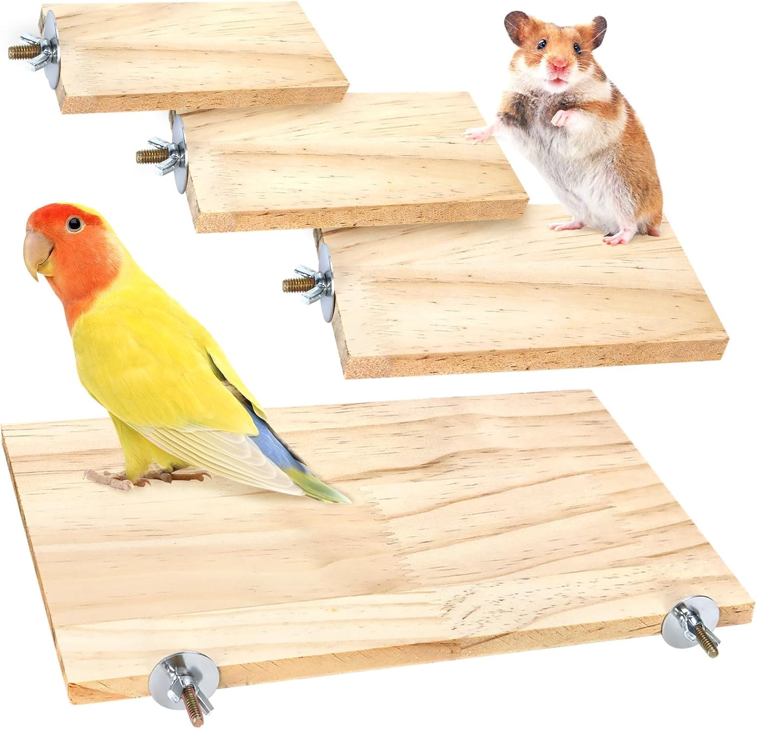 BILLIOTEAM 4-Size Bird Platforms with Wood Perches and Stand Boards - Habitat Cage Corner Shelves with Stainless Steel Washers - Ideal for Parrots, Cockatiels & Small Pets like Hamsters, Gerbils & Chi