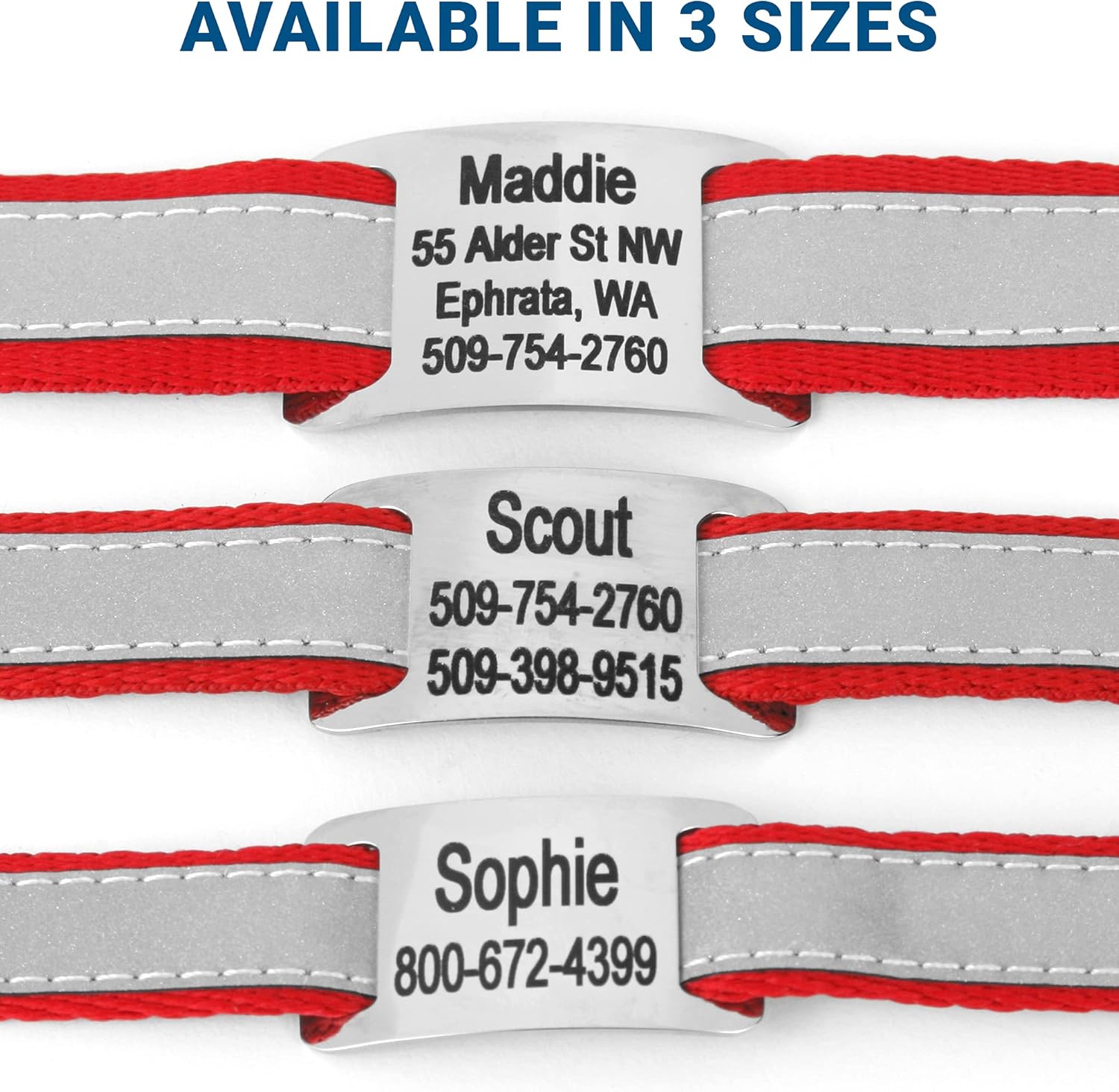 GoTags Reflective Personalized Dog Collar with Nameplate, Adjustable Dog Collar with Custom Engraved Steel Slide On Pet ID Tag, Silent, No Noise Dog Tag for Large Medium or Small (Red, Large)