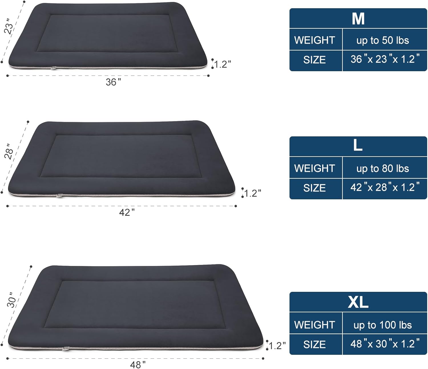 Magic Dog Large Dog Bed Soft Dog Crate Pad Dog Mat, 42 Inches Machine Washable Pet Bed Kennel Pad with Non-Slip Bottom, Dark Gray