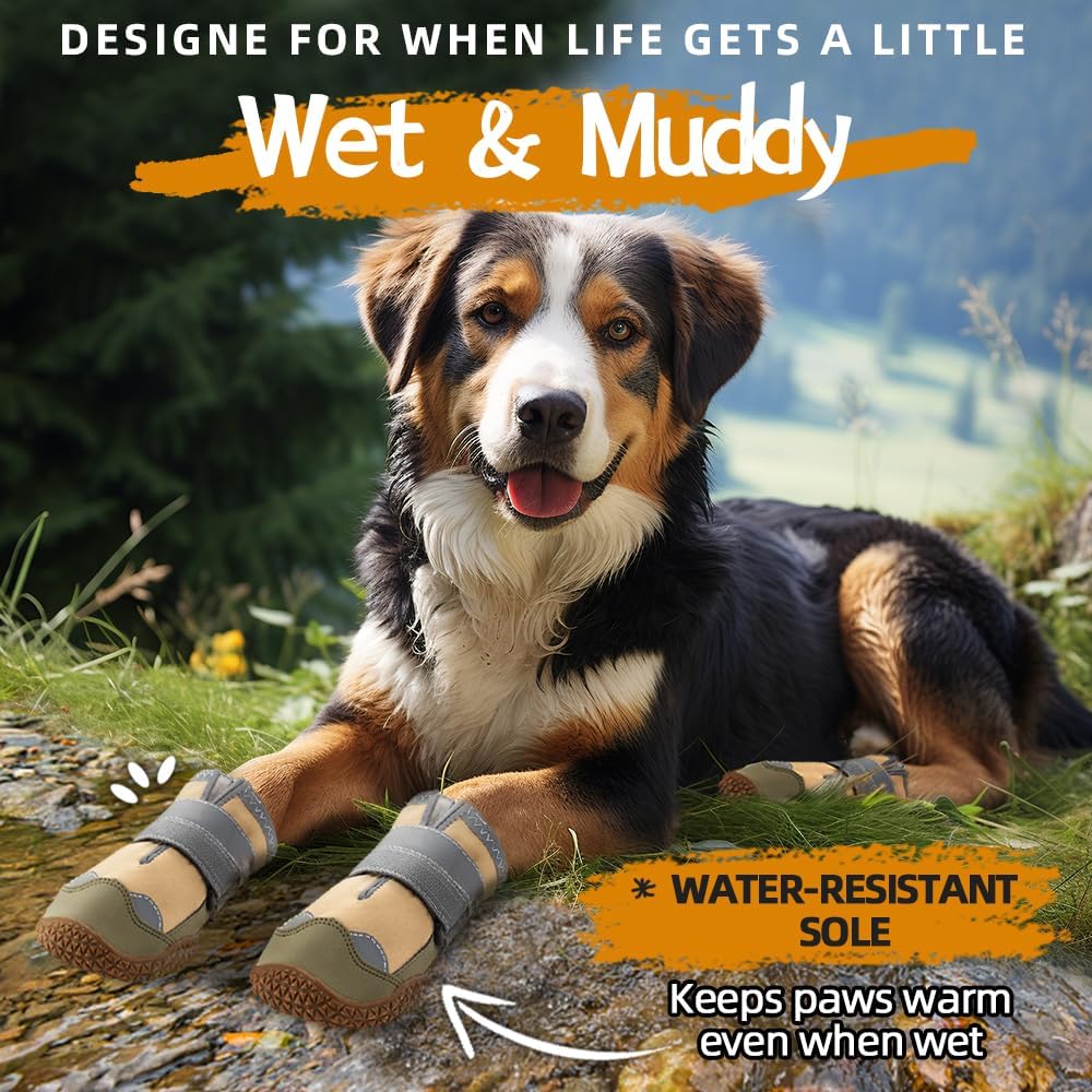 Dog Shoes for Large Dogs, Medium Dog Boots & Paw Protectors for Hardwood Floors, Outdoor Dog Booties for Hot Pavement Winter Snow Hiking, Waterproof Dog Shoes with Reflective Strips Size 4