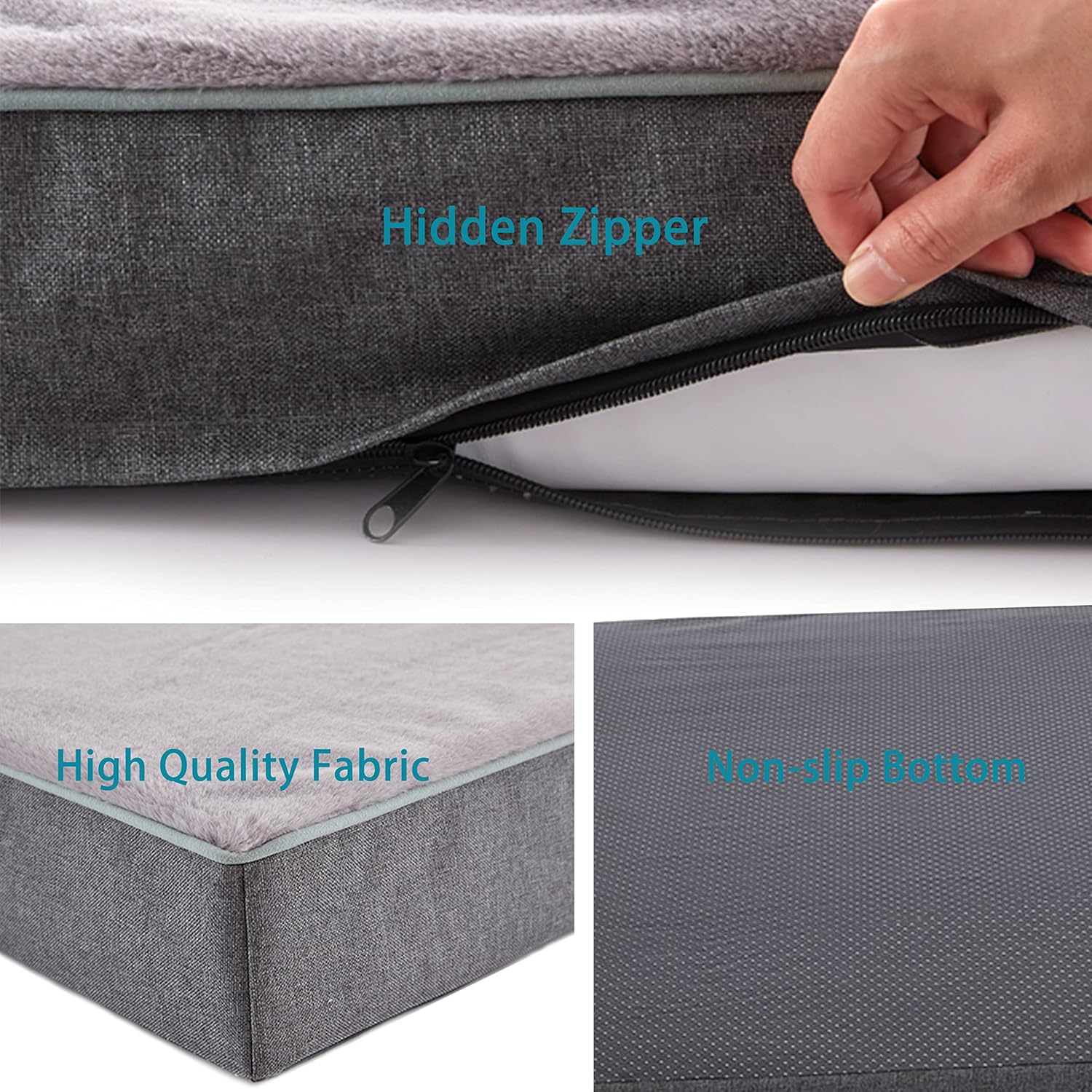 - Double layer cover:Full waterproof lining to protect memory foam;Machine washable and detachable plush surface cover with anti-skid function at the bottom.