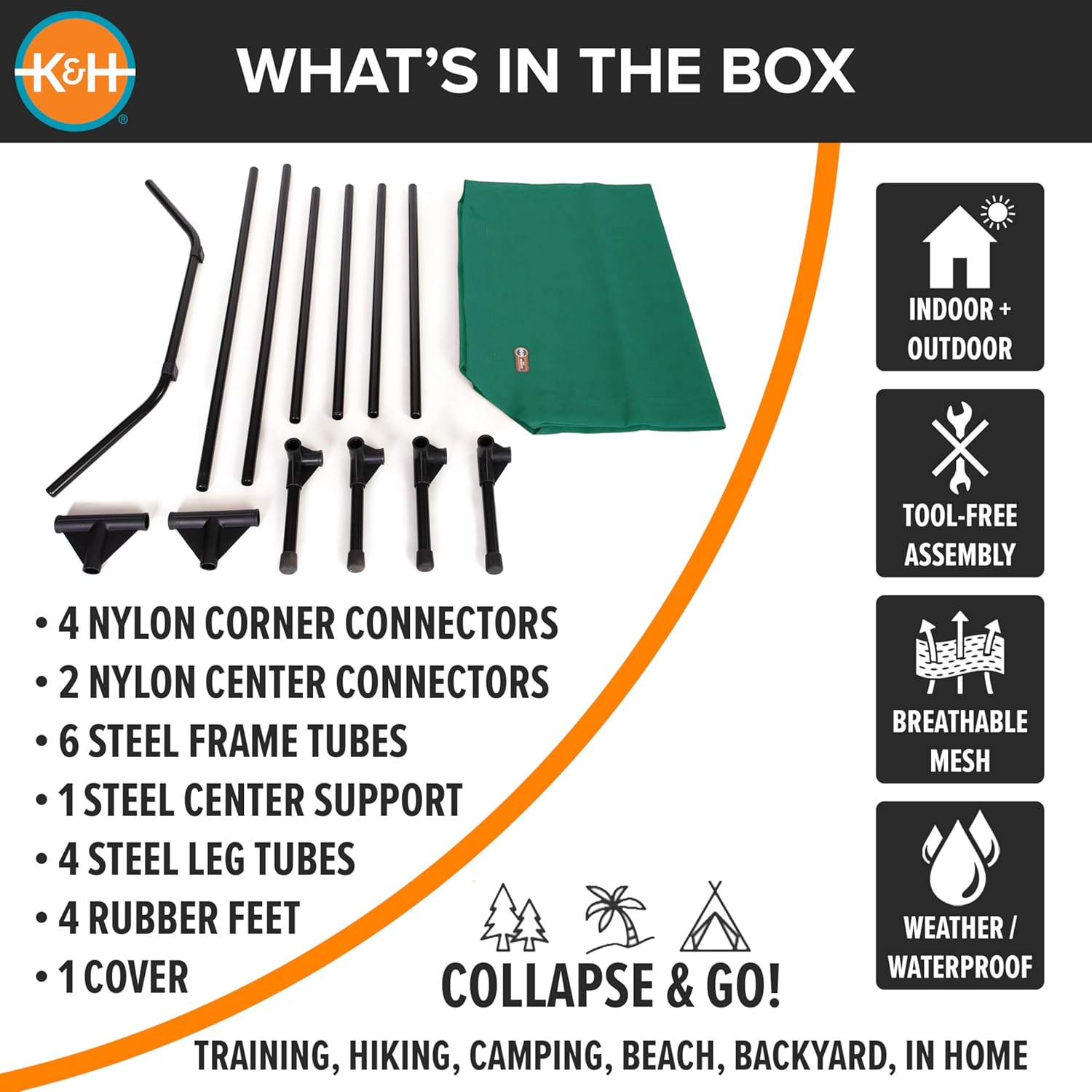 K&H Pet Products Outdoor Elevated Dog Cot, Cooling Raised Bed with Waterproof Breathable Mesh for Large Dogs, Portable Pet Bed with Heavy-Duty Metal Frame, Oversized Hammock Style - Extra-Large Green