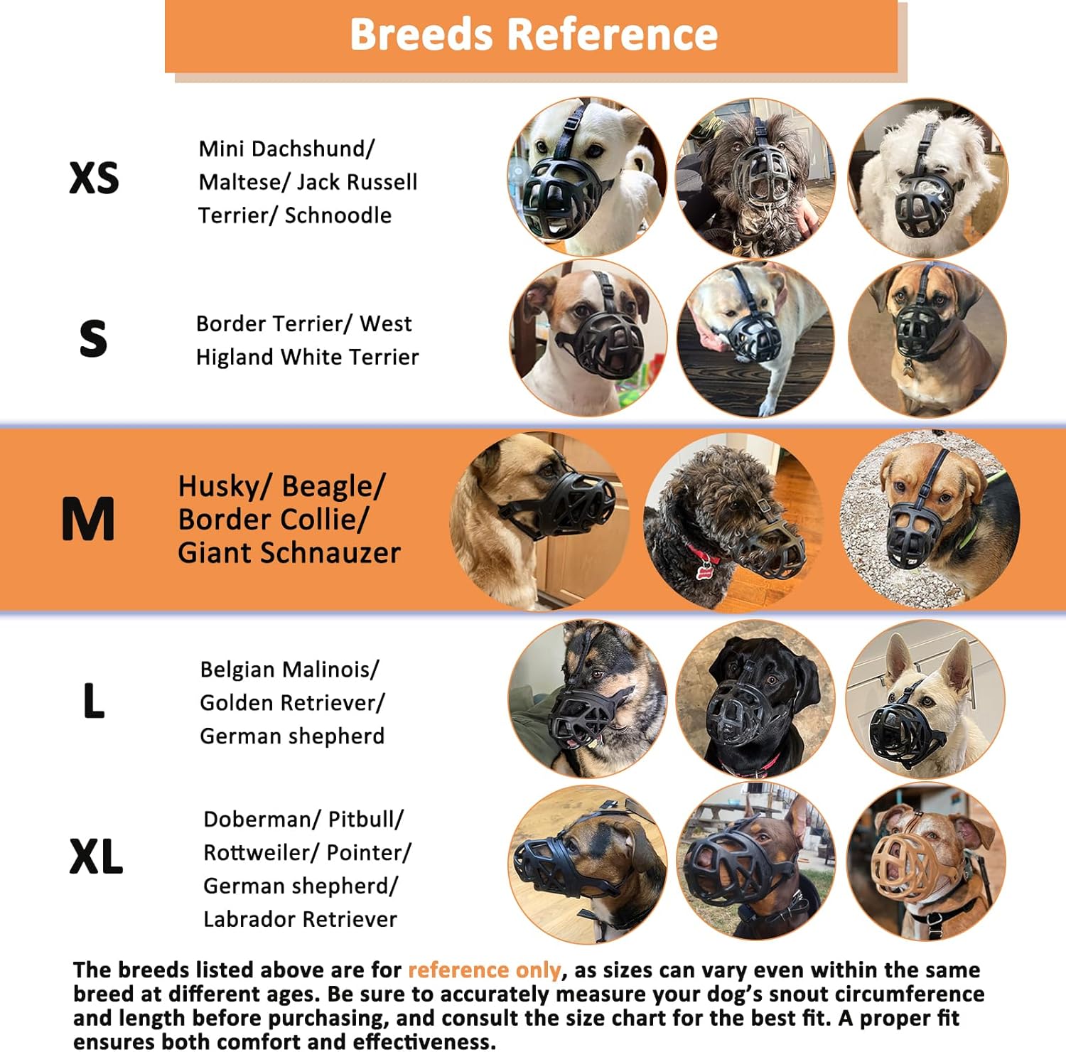- Perfect Fit for Medium Sized Dog: This option Size M basket muzzle is ideal for medium breeds like Husky and Beagle. The breeds listed above are for REFERENCE only. Be sure to measure your dogās snout circumference and length accurately before purchasing, and refer to the size chart. A proper fit ensures comfort and effectiveness