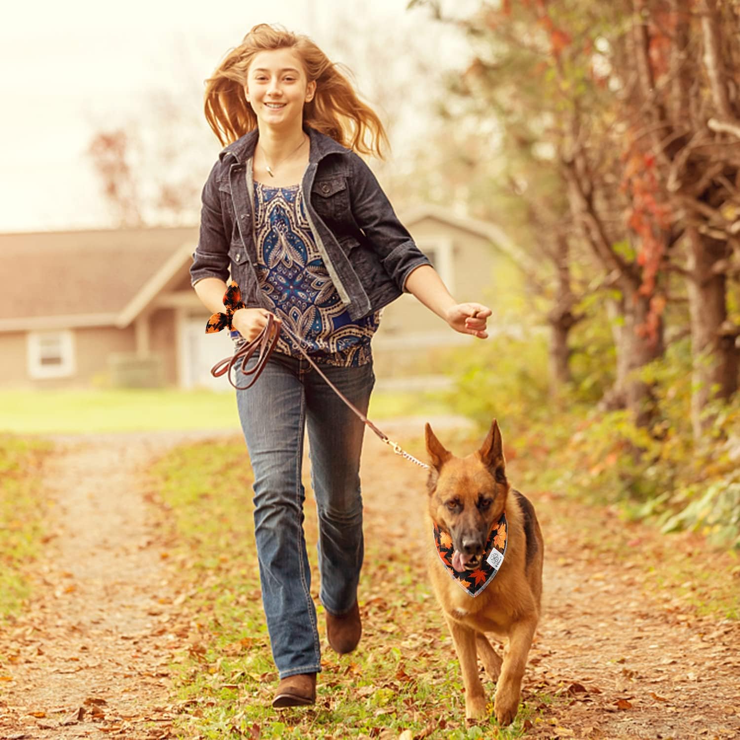 E-Clover Fall Dog Bandana & Matching Scrunchie Set Pet Scarf Kerchief Bibs Dog Outfit for Small Dogs Puppy Owner Gifts Orange Black Maple Leaves