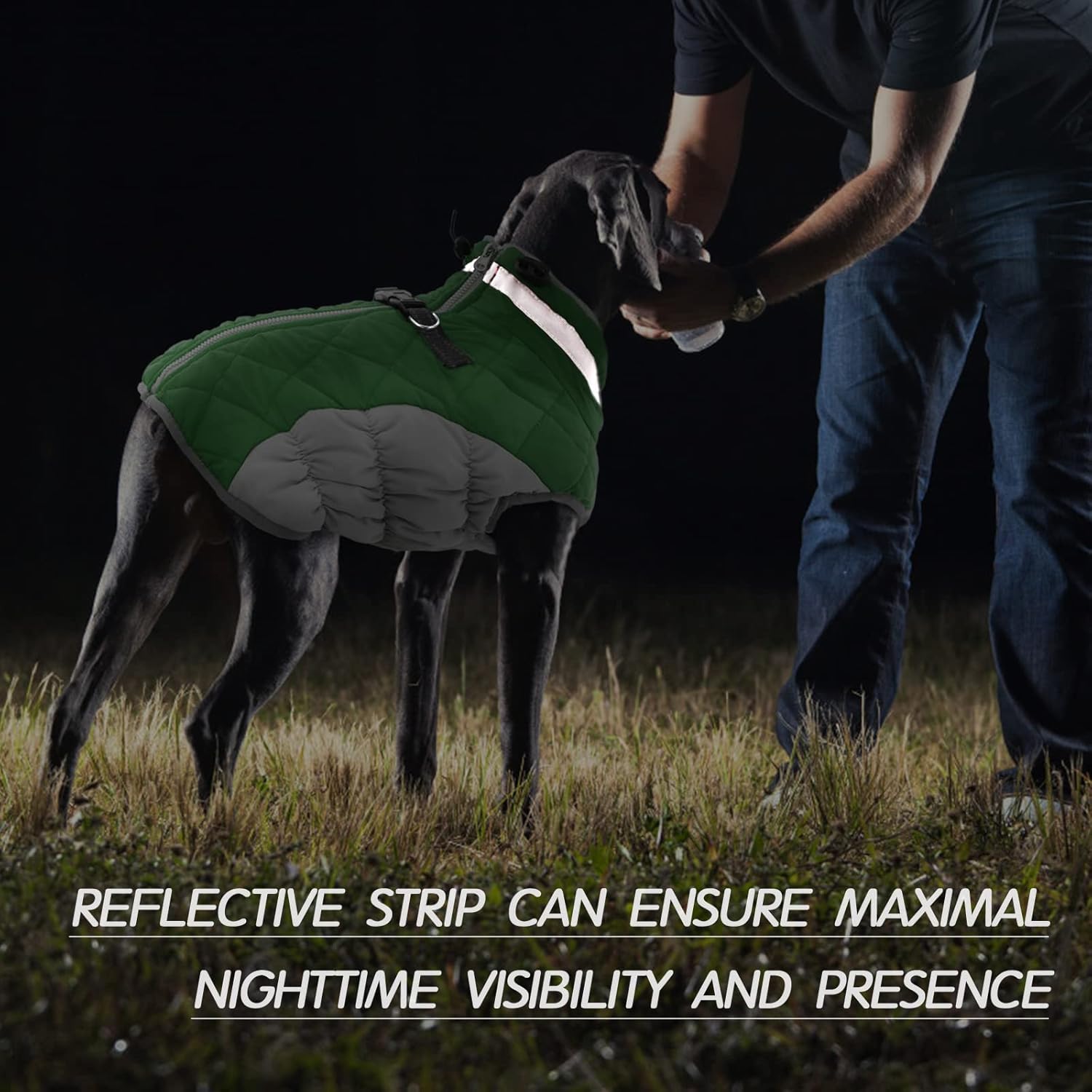 FUAMEY Dog Coat for Large Dogs,Waterproof Dog Winter Jacket with Harness Built in Puppy Cold Weather Coats Reflective Pet Vest with Zipper Warm Fleece Dogs Snowsuit Windproof Green XXXL