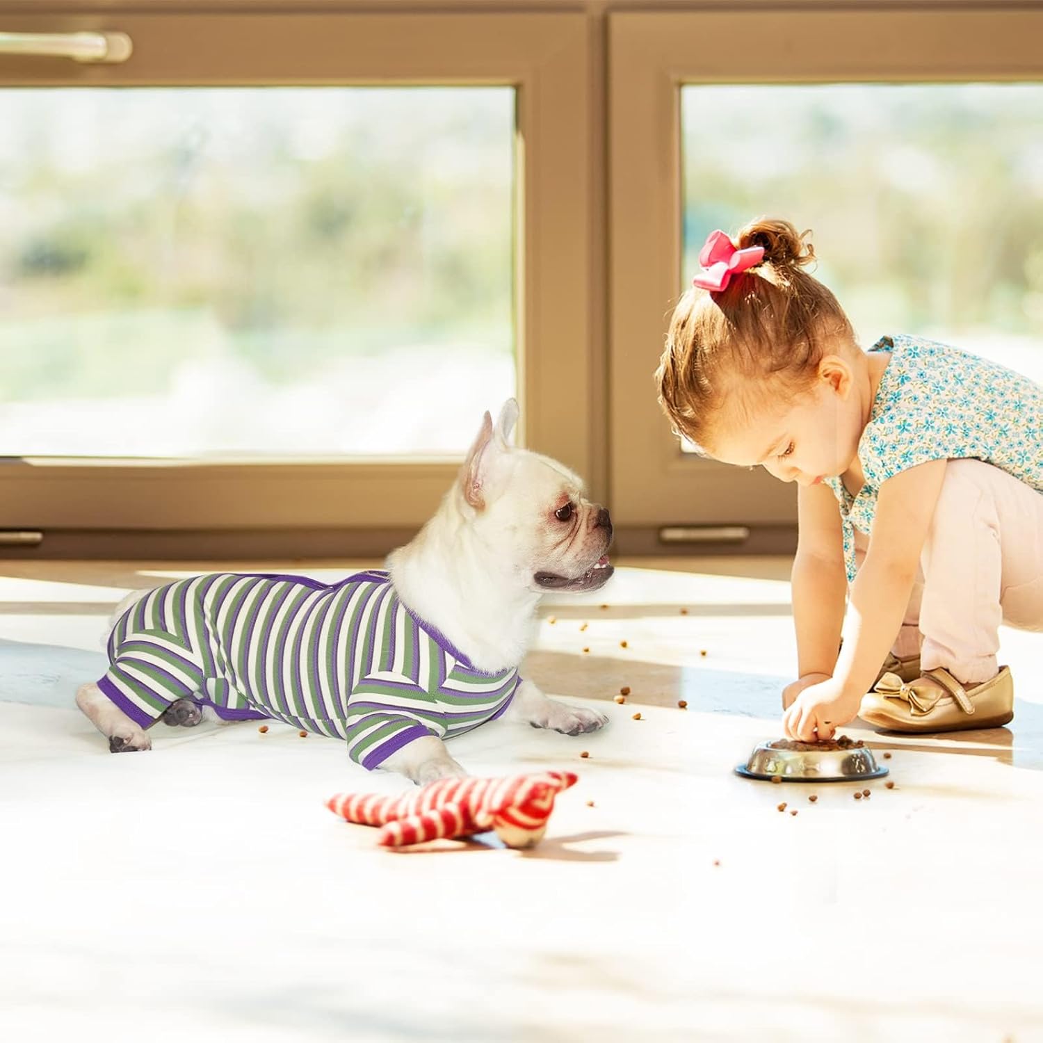 TONY HOBY Dog Pajamas, Knitted Dog Jumpsuit Shirt in Cold Weather, Dogs Surgical Recovery Suit for Small Medium Dogs (Purple&Green, Boy, XL)