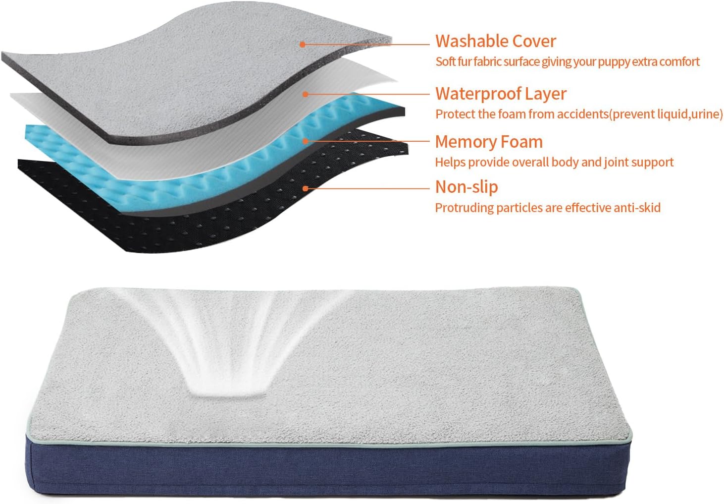 Orthopedic Memory Foam Dog Bed,Cooling Dog Beds for Large Dogs,Washable Pet Beds for Crate with Plush Cover, Waterproof Lining, L(35inch)