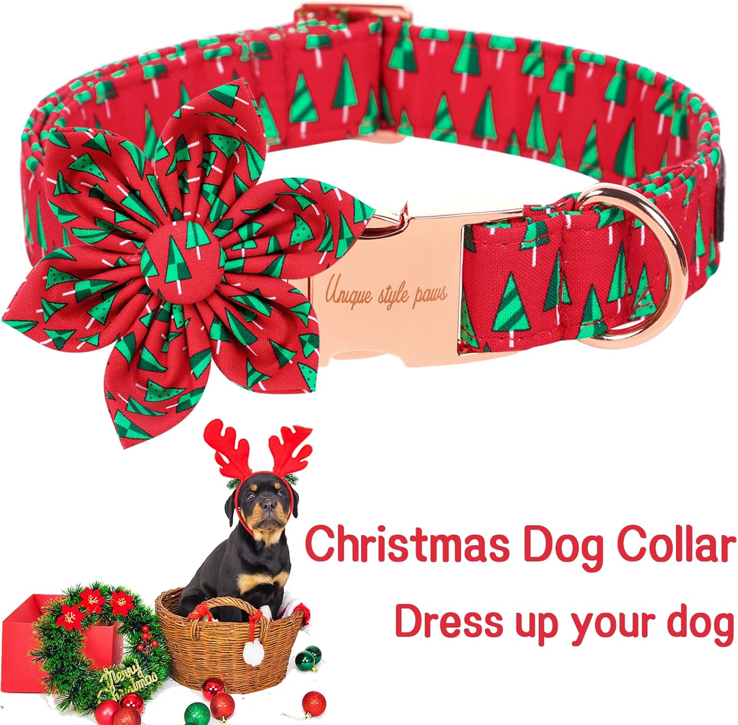 Unique style paws Christmas Dog Collar with Flower Best Winter for Small Medium Large Dogs -Christmas Tree-XL
