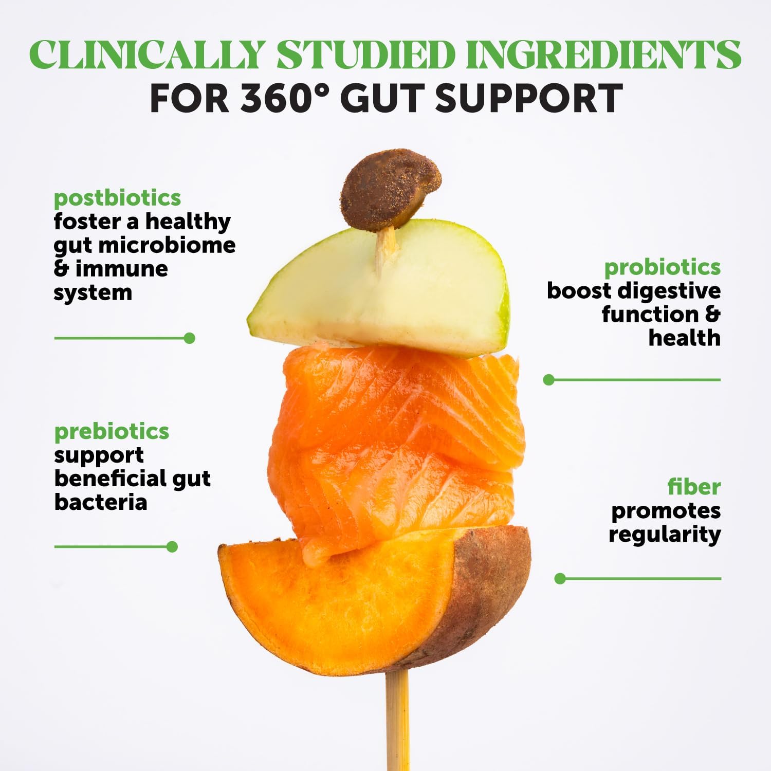 - Provide maximum support for their gut, immune, and bowel health: These easy-to-give chews contain key functional ingredients to help ease tummy troubles and grow healthy gut microbiomes, so your dog can feel their best. Our unique blend of natural soluble and insoluble fibers work together with other natural ingredients to improve stool quality, helping them feel more comfortable when itβs time to go. Plus, your dog will absolutely love the delicious natural chicken flavor!