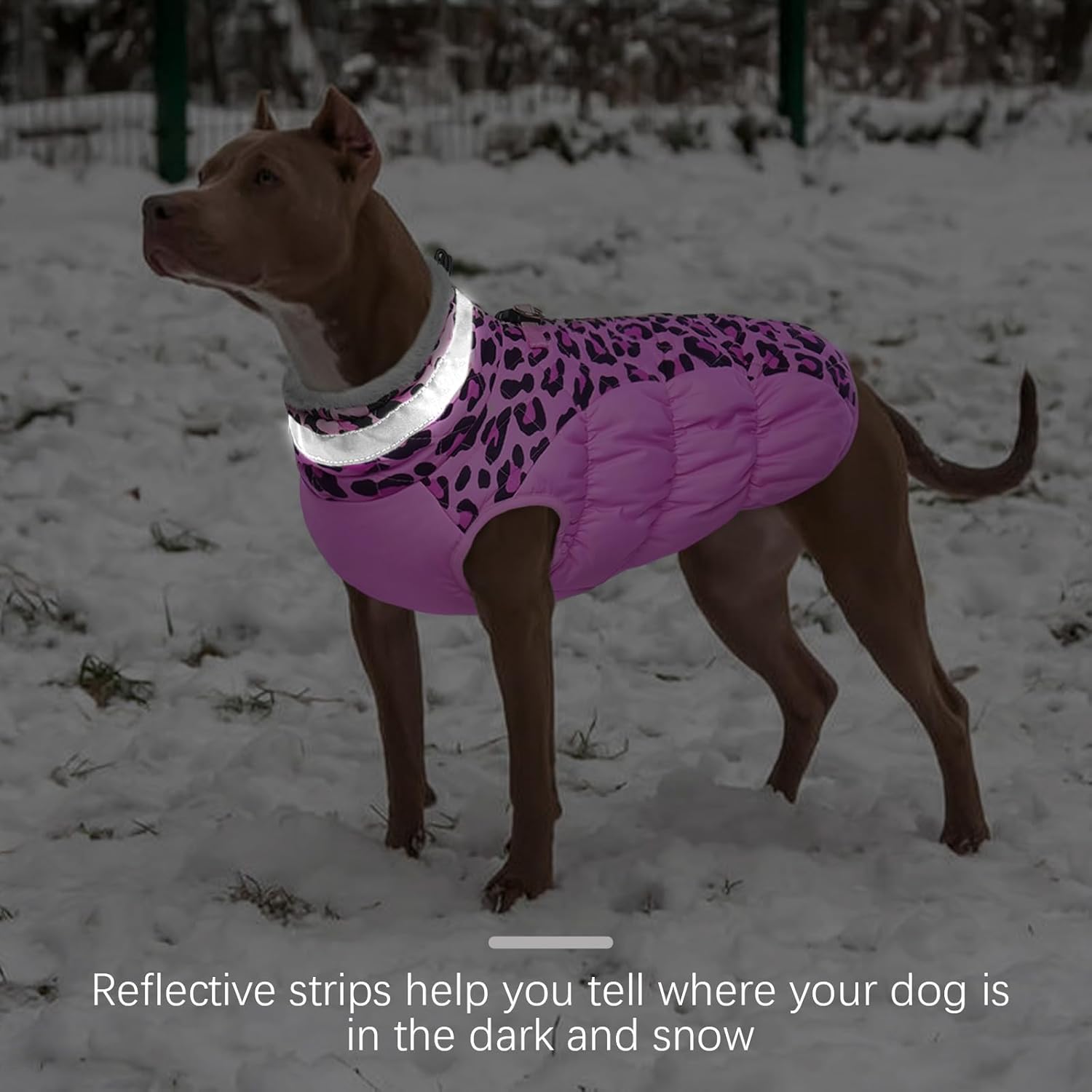 FUAMEY Dog Coat for Small Dogs,Waterproof Dog Winter Jacket with Harness Built in Puppy Cold Weather Coats Reflective Pet Vest with Zipper Warm Fleece Dogs Snowsuit Windproof Pink Leopard S