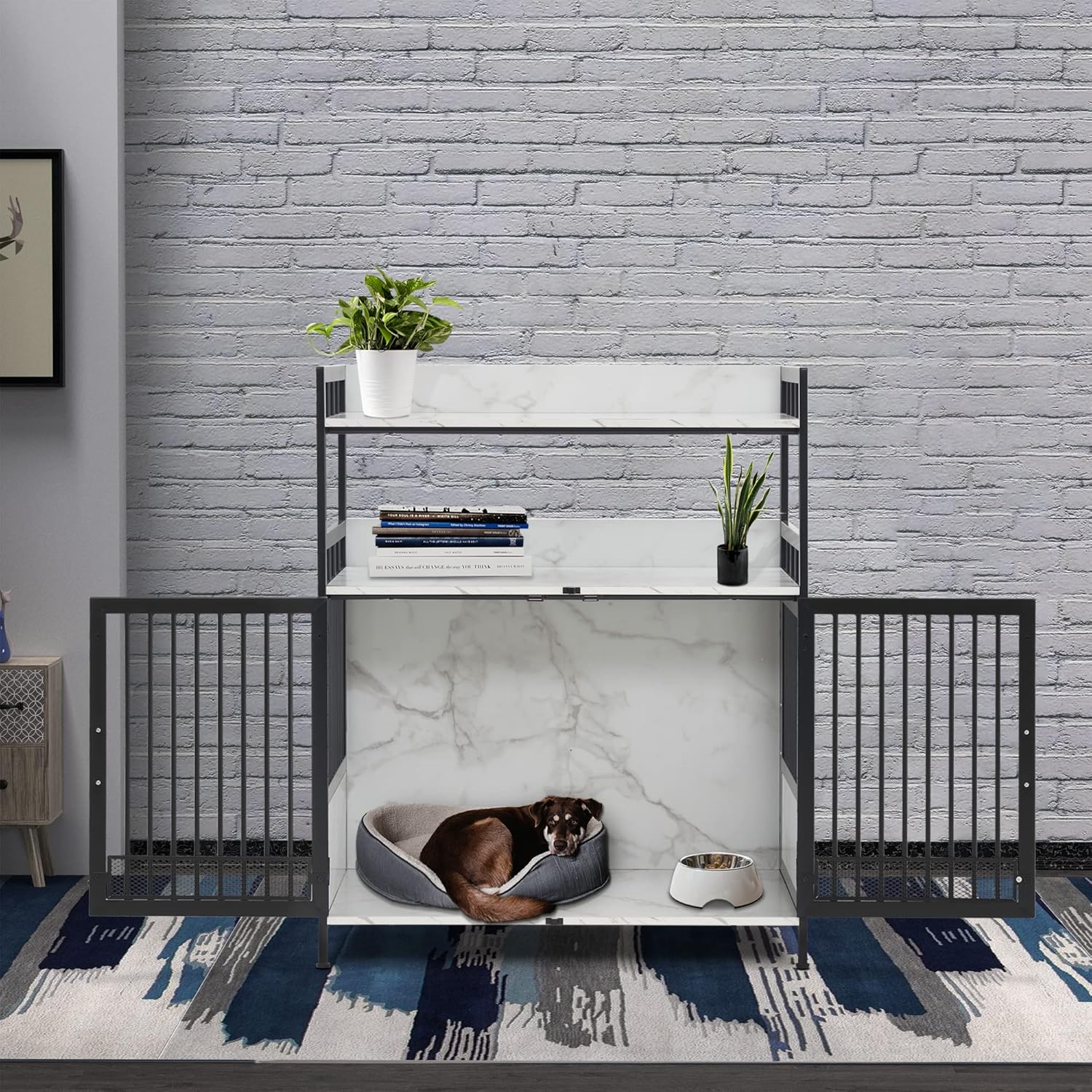 - Combining Function and Style: This dog kennel includes two-tier shelves for your storage needs, and its furniture style design adds a cozy, homey touch