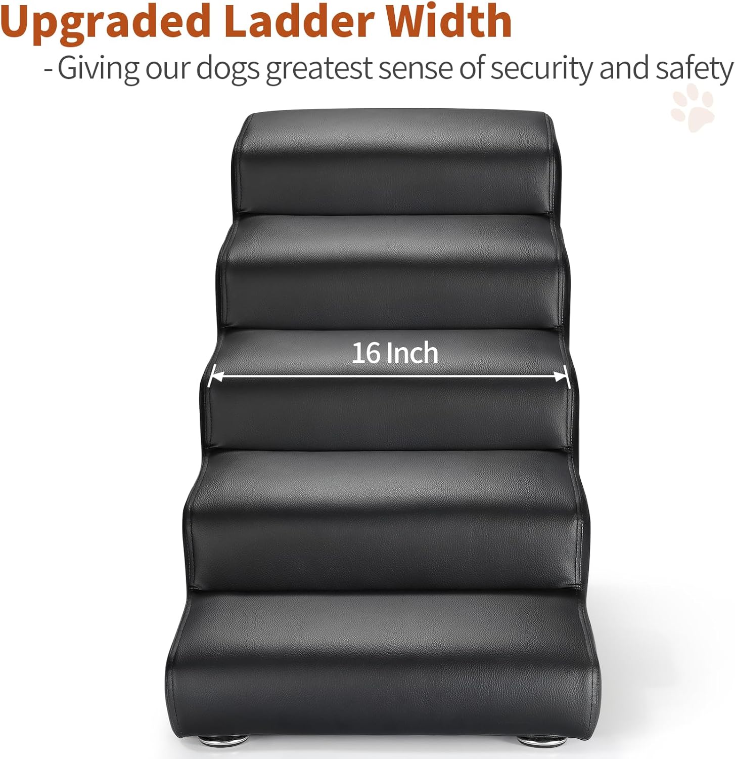 Senneny Black Faux Leather Dog Stairs, for Pets up to 150 lbs, Waterproof, Scratch Resistant Pet Steps/Stairs with High Density Foam and Detachable Wooden Legs, Black, 5 Step