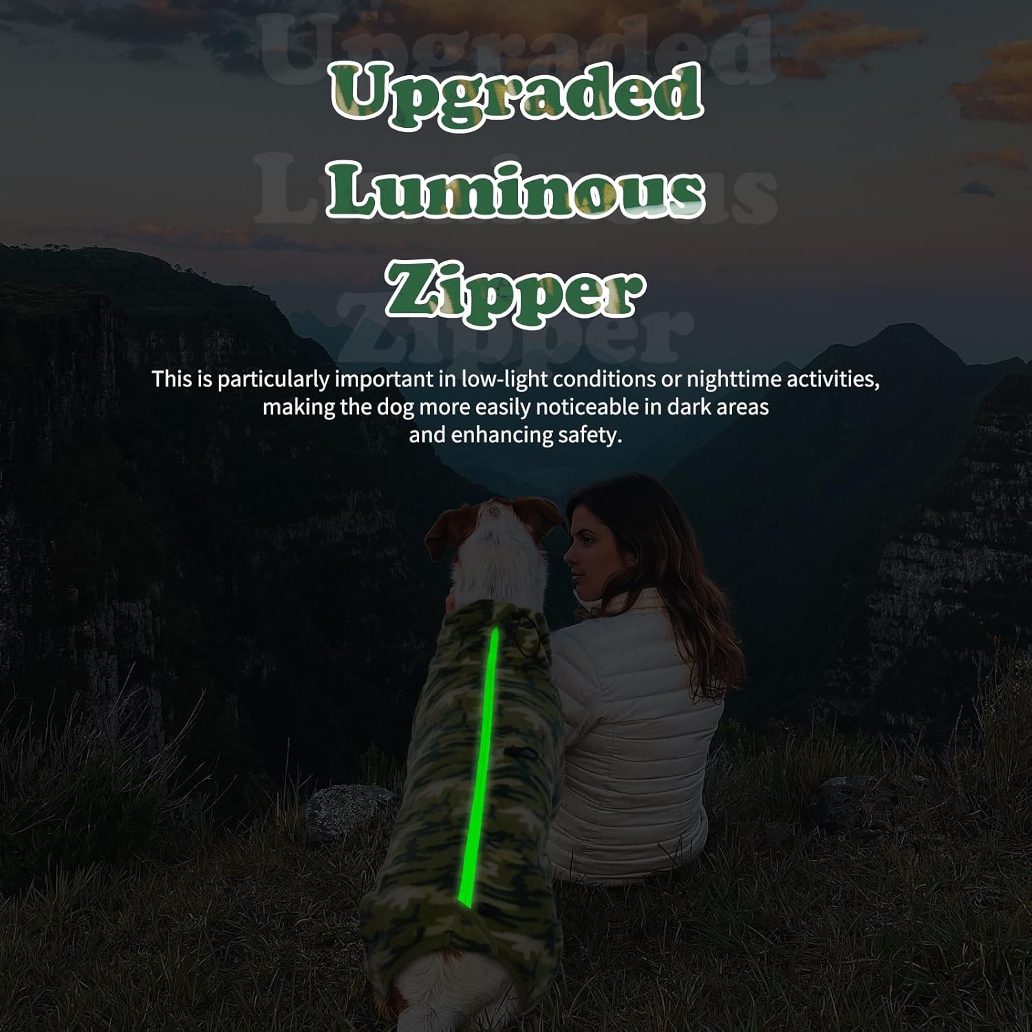 ROZKITCH Camo Dog Jacket Fleece Pullover Pajamas, Pet Windproof Warm Cold Weather Jacket Vest with Luminous Zipper, Jumpsuit Apparel Outfit Clothes for Small Medium Large Dog Camo L