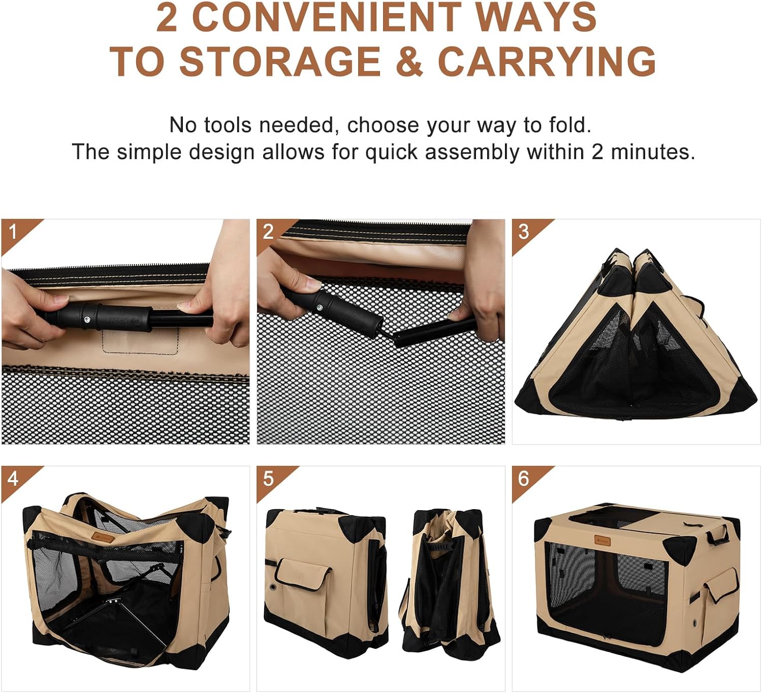 36 Inch Collapsible Soft Dog Crate for Large Dogs, 4-Door Foldable Travel Dog Kennel with Durable Mesh Windows for Indoor & Outdoor Portable Pet Crate, Soft Side Dog Crate, Beige