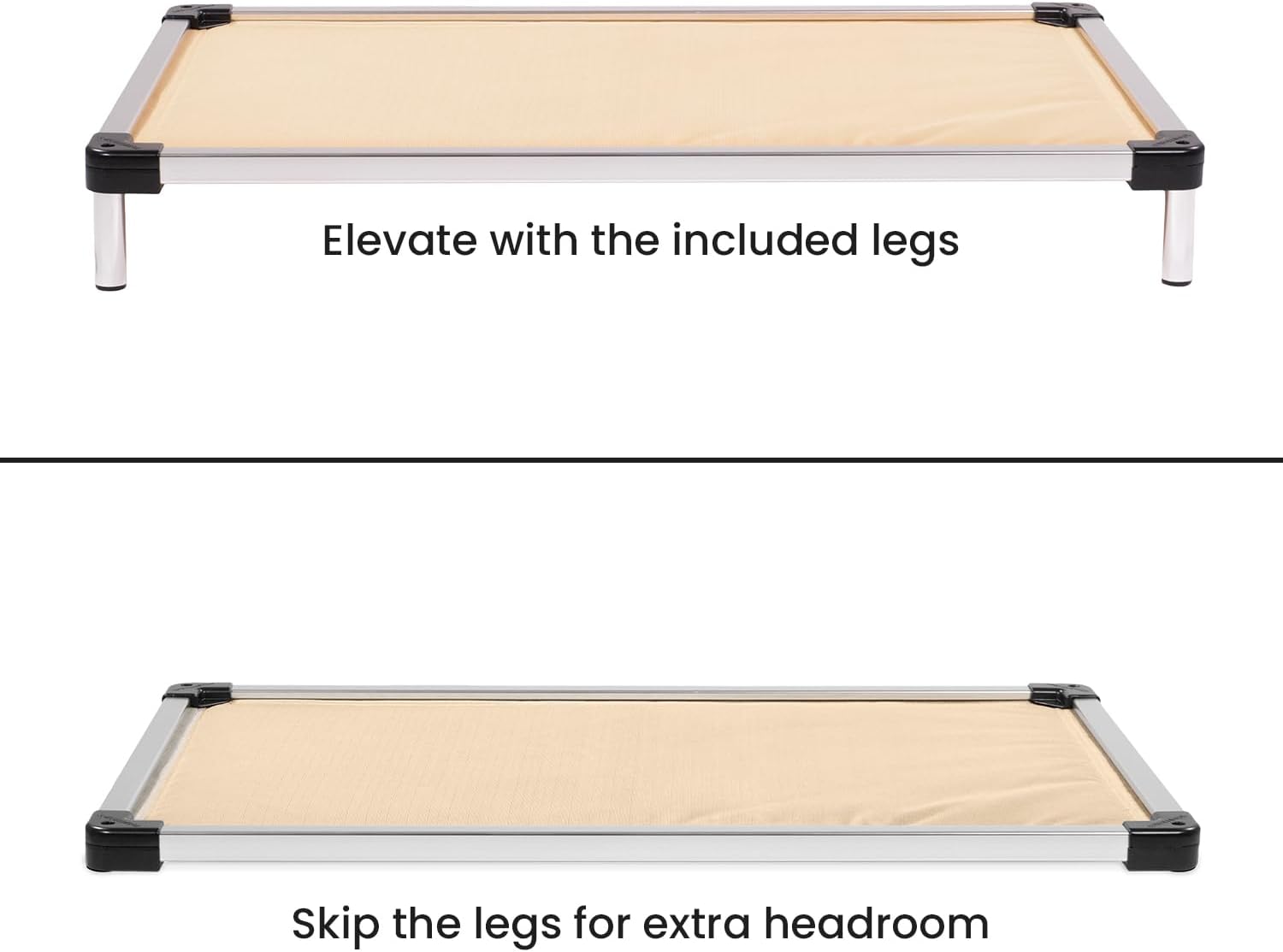 - Elevated and Padded for Extra Comfort: The bed's padded sling is filled to a 1.5β thickness with recycled polyester fiberfill for extra softness and insulation. When elevated with the included legs, it conforms to your dogβs body to eliminate pressure points and provide orthopedic-style support.