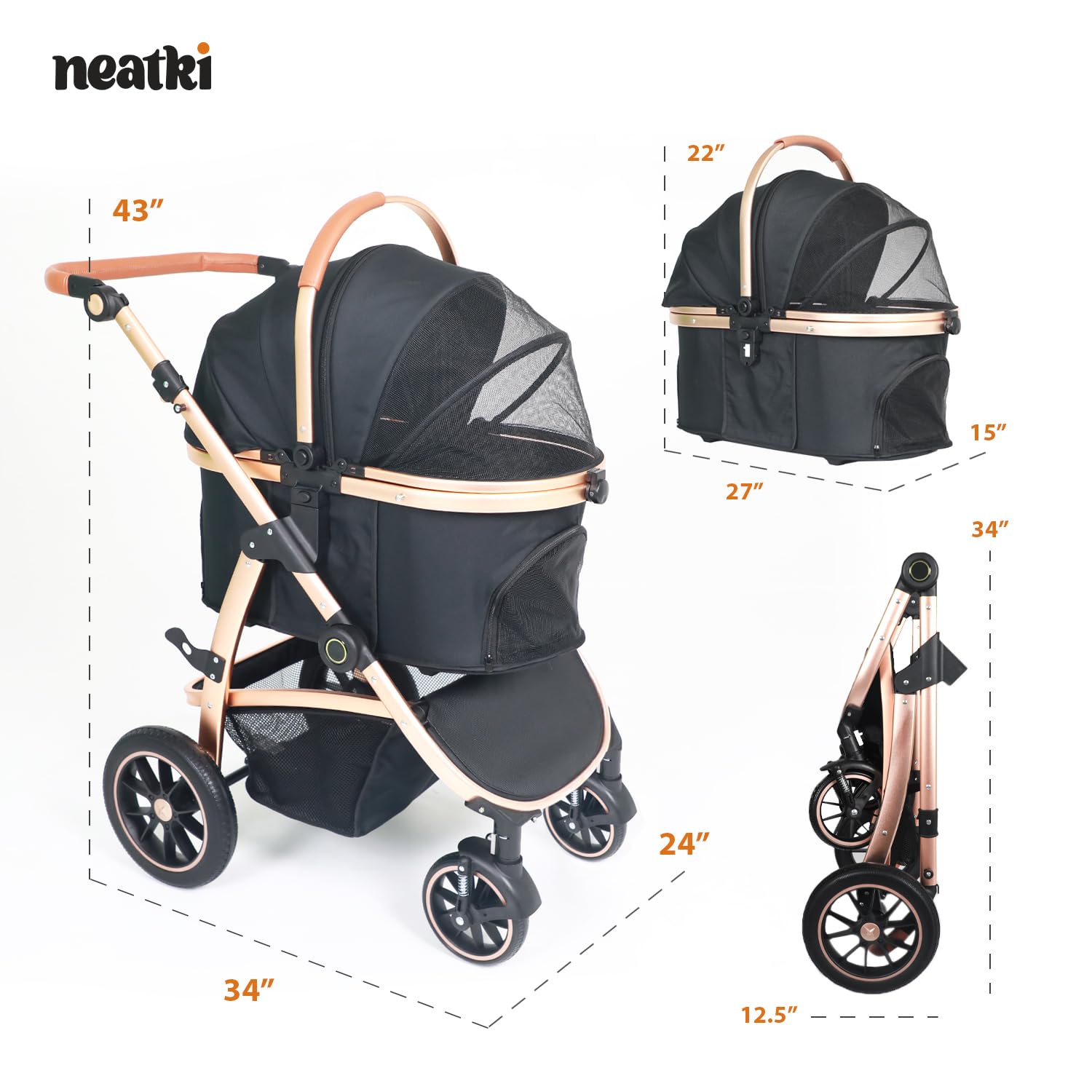 - Multi-Functional Design – Effortlessly switch between a pet stroller, carrier, and a car seat for ultimate versatility. This dog and cat stroller with a removable carrier enhances every adventure for daily walks or convenient travel.