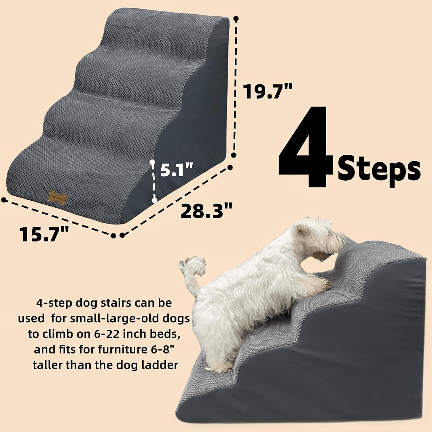 4-Step Dog Stairs for High Beds 18-24 Inch Pet Steps 2 3 4 5 Tier Ladder Non-Slip Sturdy Ramp Small Medium Large Dog Steps to Couch Bed Old Dogs Balanced Pet Stairs for Getting on Bed