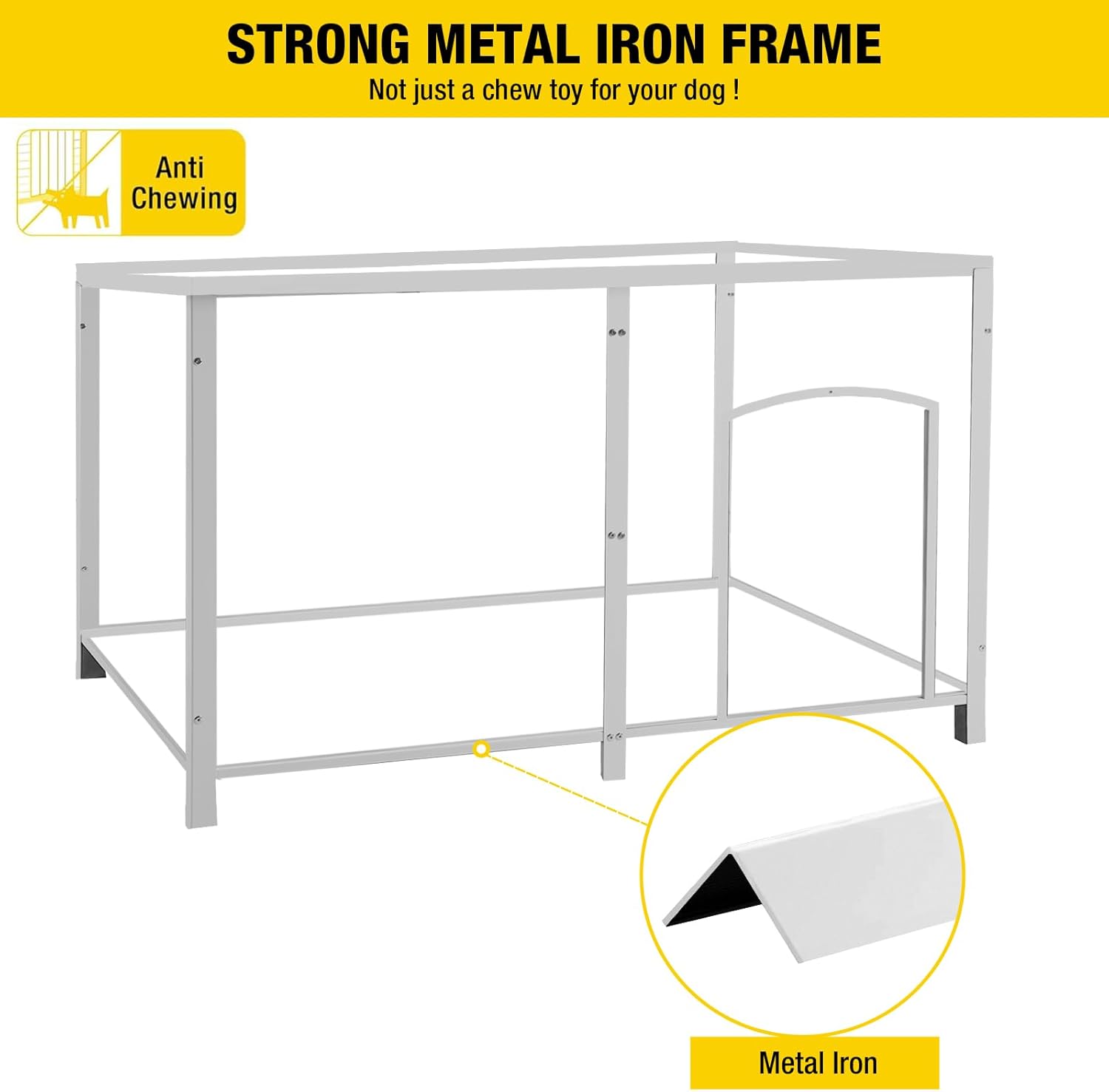 Aivituvin Large Dog House with Insulated Liner for Outdoor, Waterproof Outsides Heated Dog Kennel for Small Medium Large Dog with All-Around Iron Frame