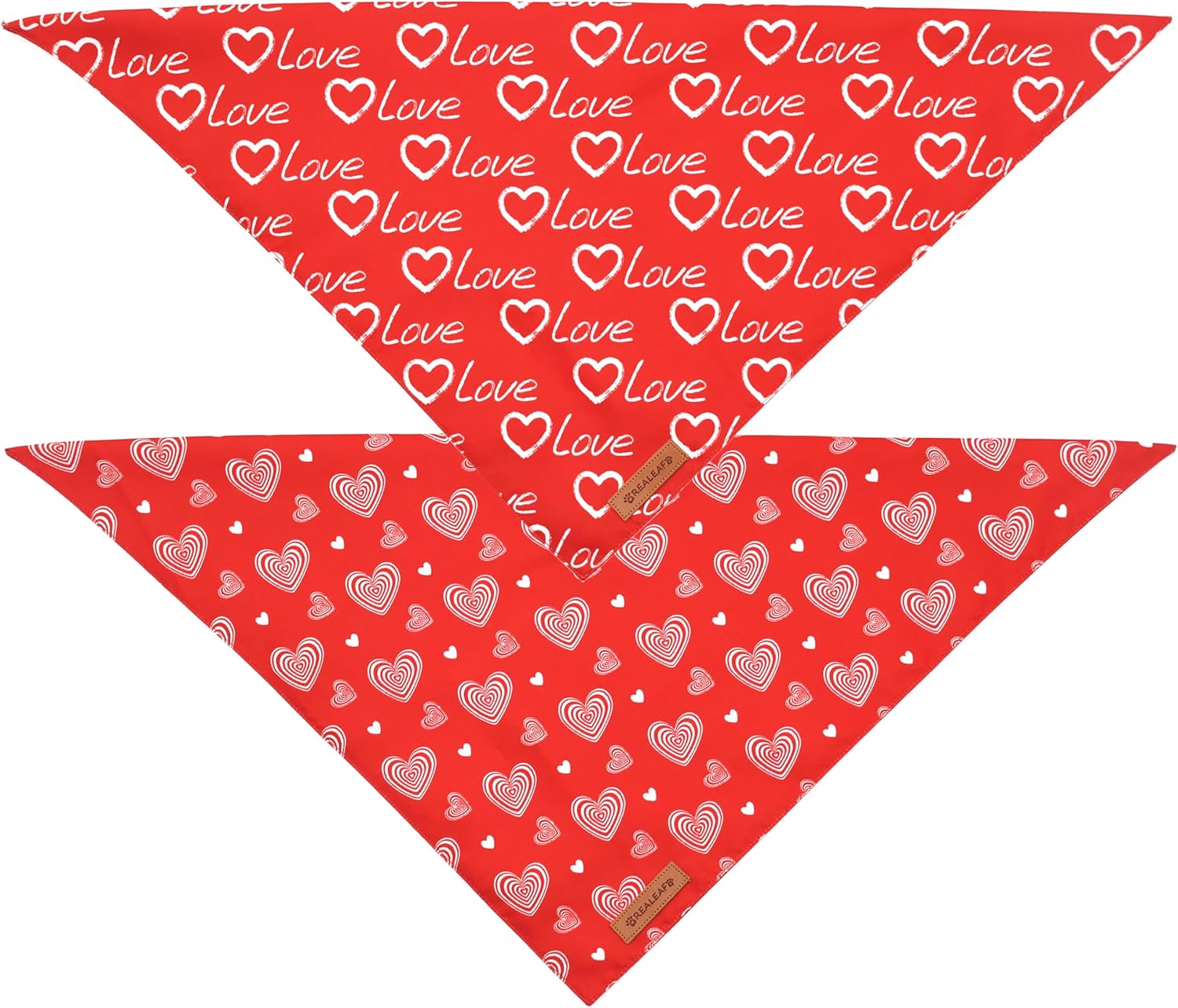 Realeaf Valentines Day Dog Bandanas 2 Pack, Reversible Love Pet Scarf for Boy and Girl, Premium Durable Fabric, Heart Bandana for Small Medium Dogs (Small)