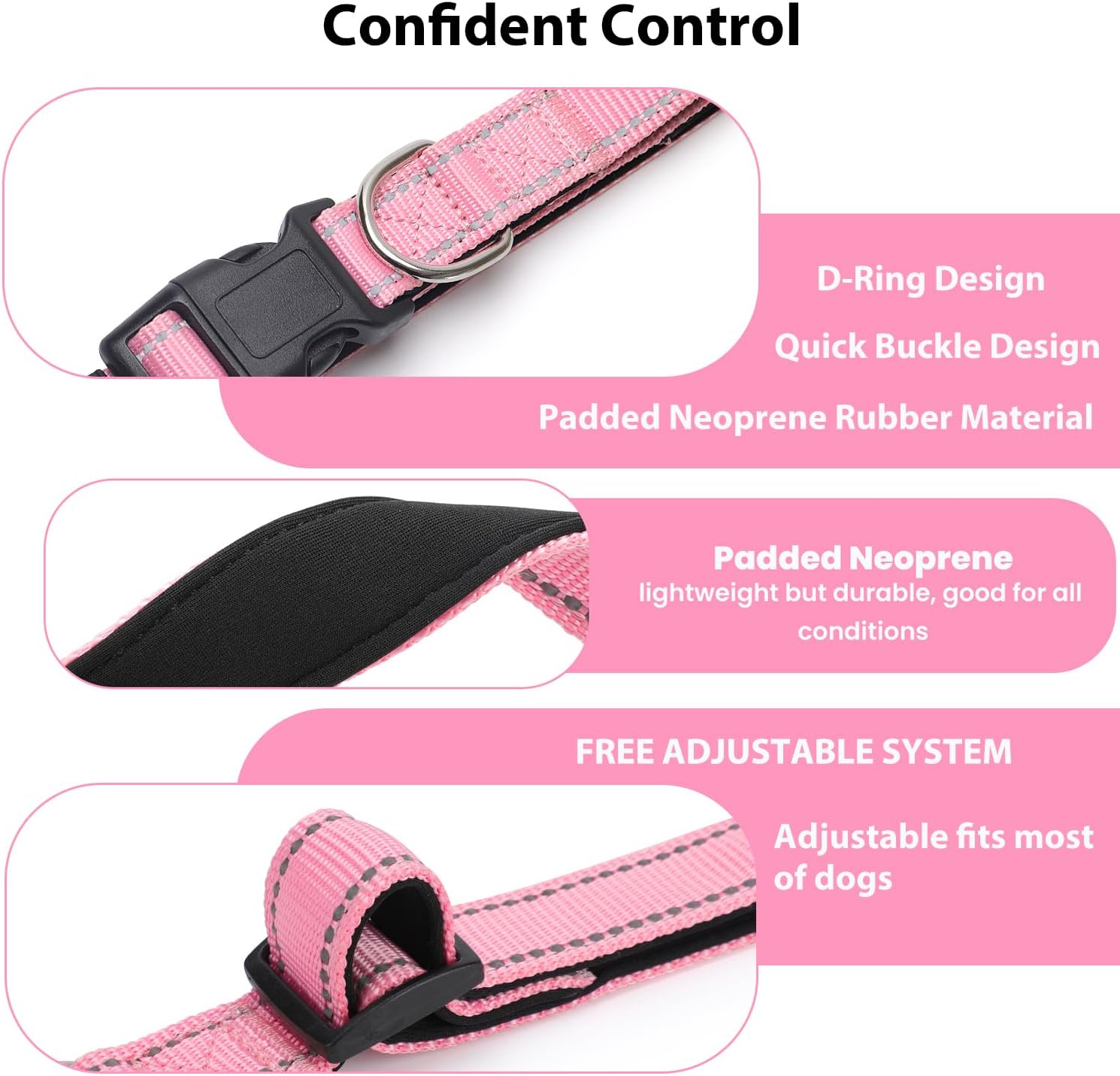 Reflective Dog Collar Padded with Soft Neoprene Breathable Quick Release Basic Dog Collars for Puppy Small Dogs Pink Girl