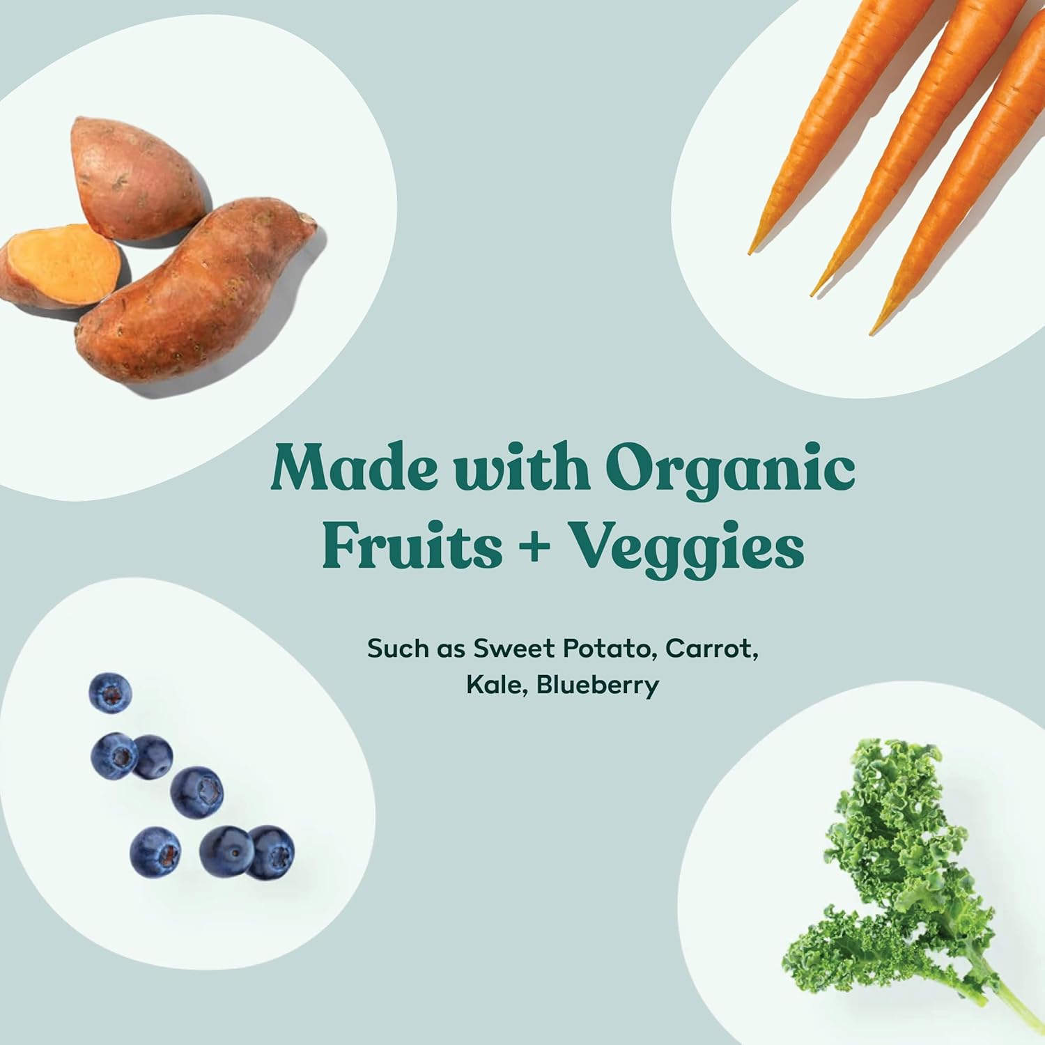 - π₯¦ ORGANIC FRUITS & VEGGIES FOR FIBER: Packed with organic fruits and vegetables, like sweet potatoes, blueberries, and spinach, offering natural fiber, antioxidants, and digestive support. Helps maintain a healthy gut and immune system.