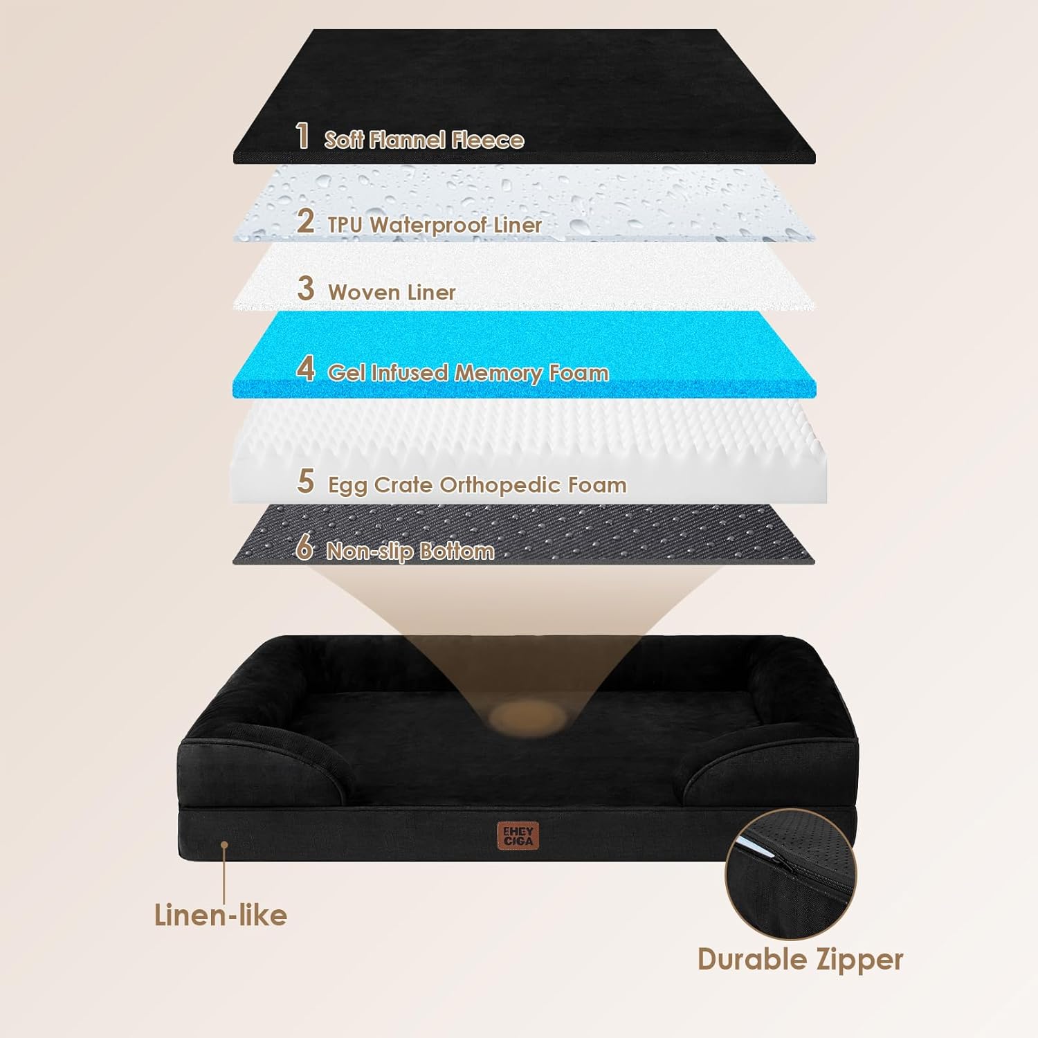 EHEYCIGA Orthopedic Dog Beds for Extra Large Dogs, Waterproof Memory Foam XXL Dog Bed with Sides, Non-Slip Bottom and Egg-Crate Foam Big Pet Couch Bed with Washable Removable Cover, Black