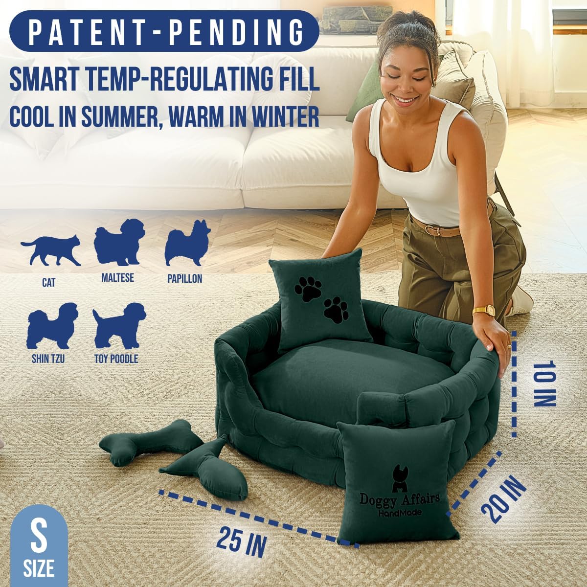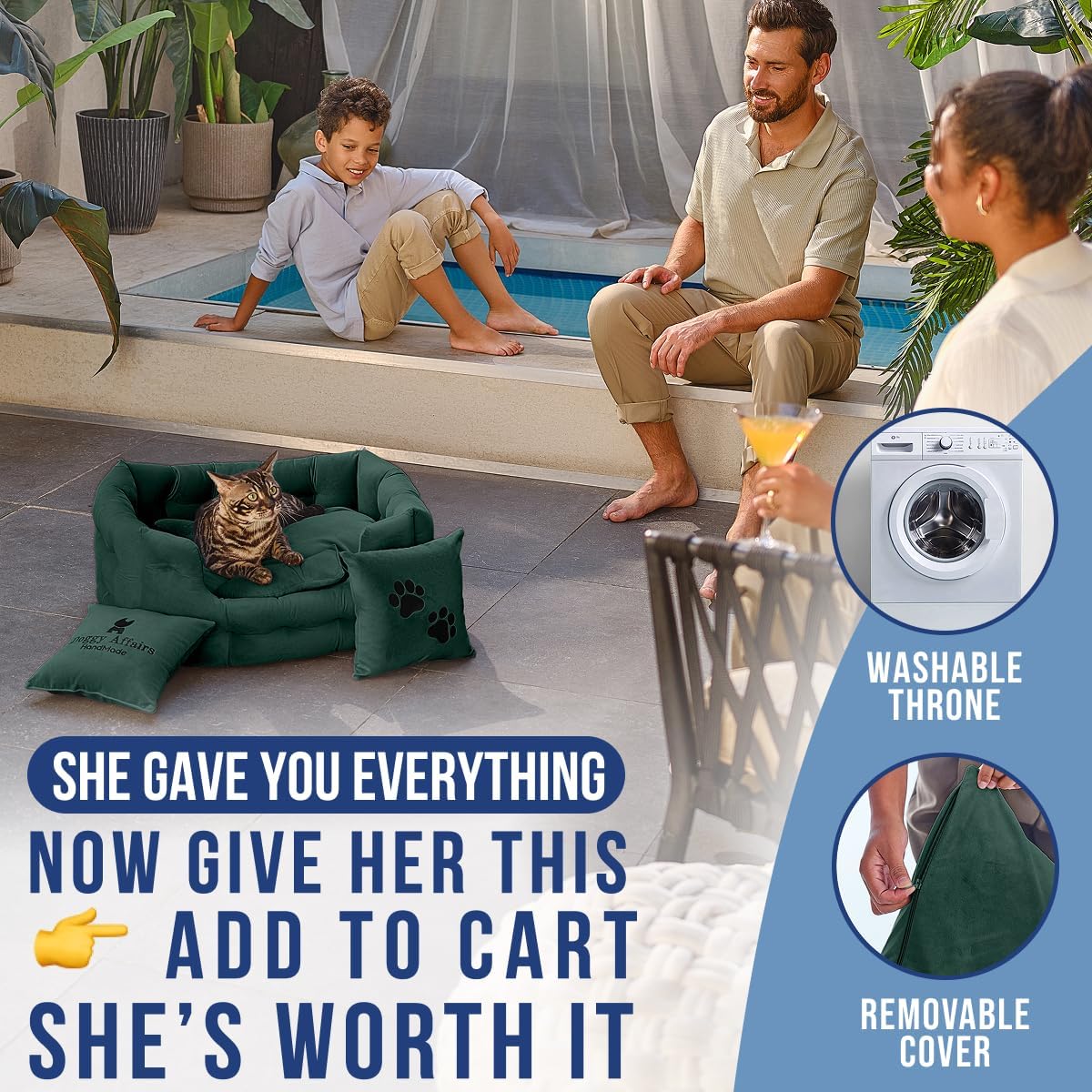 Luxury Cat and Dog Bed Chesterfield – Handcrafted Velvet Throne for Dogs | Joint Support, Calming & Temp-Regulating Comfort | Durable 5+ Years, Anti-Claw, Washable 100+ Times – S, Green