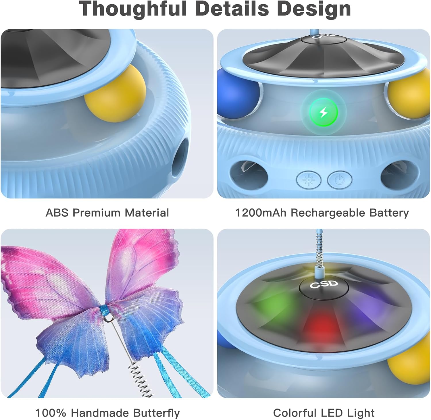 - Rechargeable and long-lasting companionship: The interactive cat toys for indoor cats, it built in a 1200mAh lithium battery, charging 2 hours,The automatic cat toy can accompany your pets about for 1 week