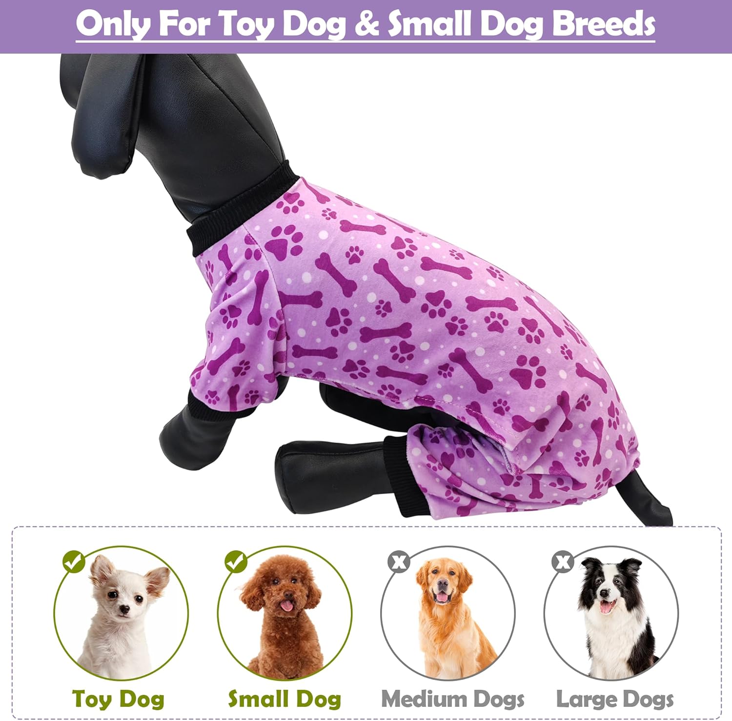 PET SHOW 4 Pack Small Dog Pajamas Paw Bone Patterns Cute Clothes for Medium Dogs Soft Fleece Stretchy PJs 4 Legged Jumpsuit Puppy Cats Onesies Outfits with Sleeve Dachshund Doggies Girl Boy (Medium)