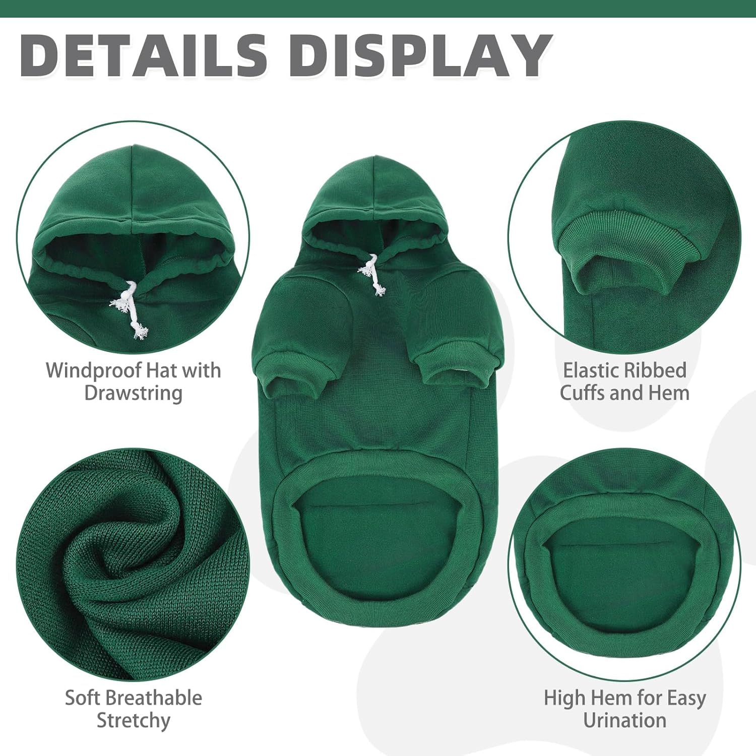 KOOLTAIL Basic Dog Hoodie - Soft & Warm Dog Hoodie Sweater with Leash Hole and Pocket, Dog Winter Coat, Cold Weather Clothes Sweatshirt for Small Medium Large Dogs Puppy Cat Boys Girls Green XL/XXL