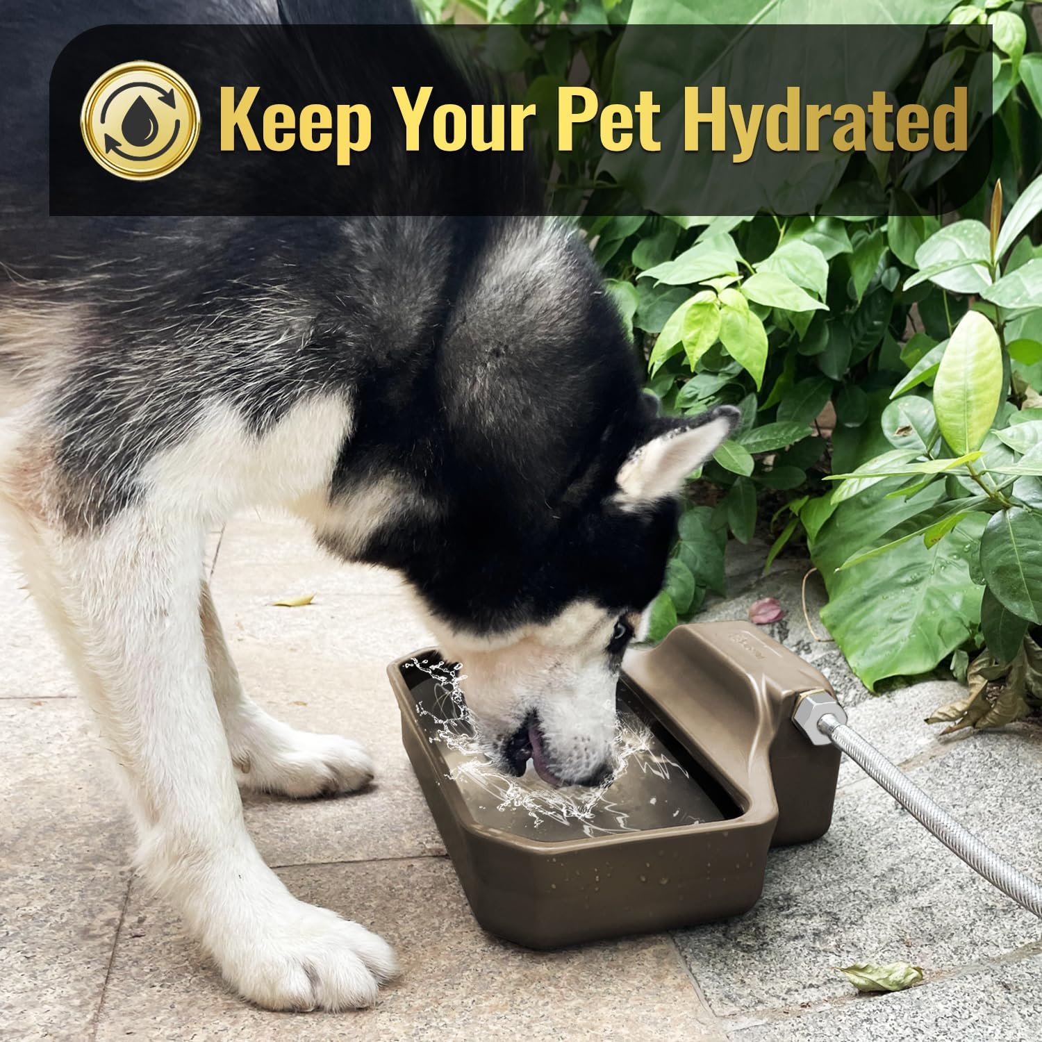 135OZ Automatic Water Dispenser for Dogs Patented Automatic Dog Water Bowl Fit 3/4'' GHT Male Faucet Outdoor Large Dog Water Bowl Include Water Hose Copper Connector Large Drinking Area Brown