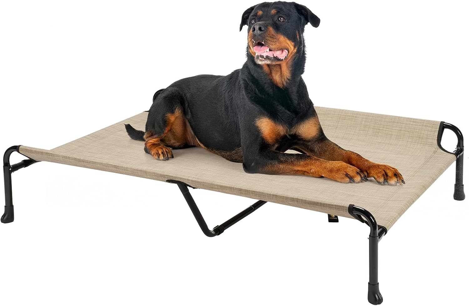 Veehoo Cooling Elevated Dog Bed - Raised for Large Dogs, Outdoor With Guardrail, Upgraded Non-Slip Feet, Breathable Teslin Mesh, Portable Camping Cot, 47 x 29 Inches, Beige Coffee