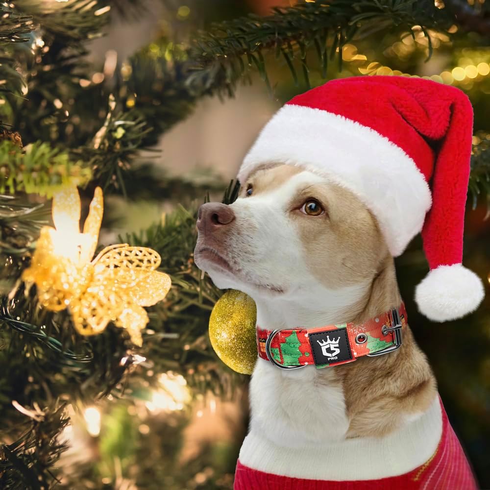 TSPRO Tactical Dog Collar 1.25 Inch Wide Thick Dog Collars with Heavy Duty Metal Buckle, Durable, Strong, Adjustable for Small Dogs (Christmas Red S)