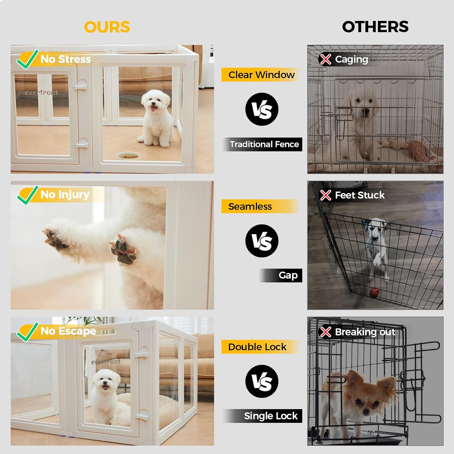 30.3“H 2PCS Extension Kit - Door+Panel, T-Buckles for Compartment, Expandable Clear Dog Play Pen Acrylic Dog Playpen Indoor,for Puppy Cat Bunny Small & Medium Dogs (White, 30.3" H, 2PCS)