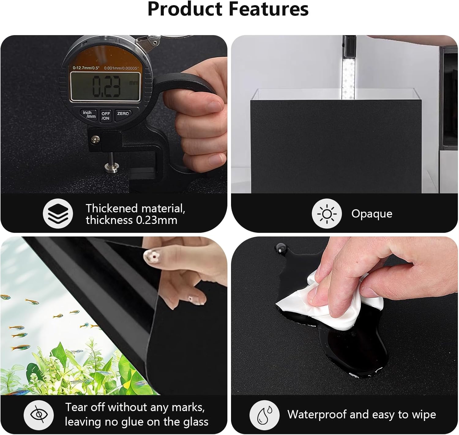 Aquarium Background Paper Decor Fish Tank Backdrop Wallpaper Electrostatic Adhesive, No Glue, Easy to Install, Reusable (19.7”H×59.1" L, Black)
