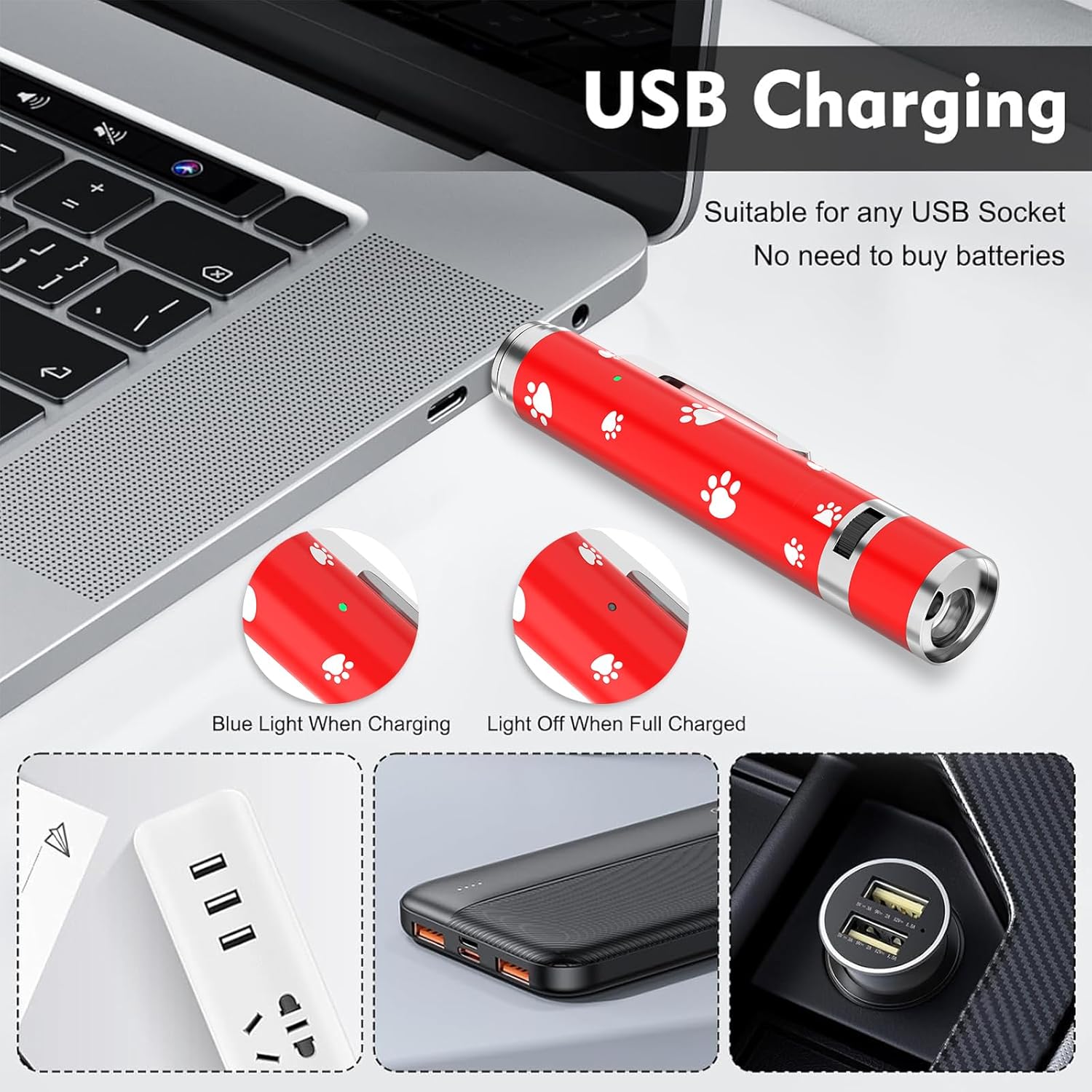 EAWONGEE Cat Toys Rechargeable, Indoor Cats Chase Light, Interactive for Kitty Pet Dog with 3 Light Modes 5 Patterns, Red