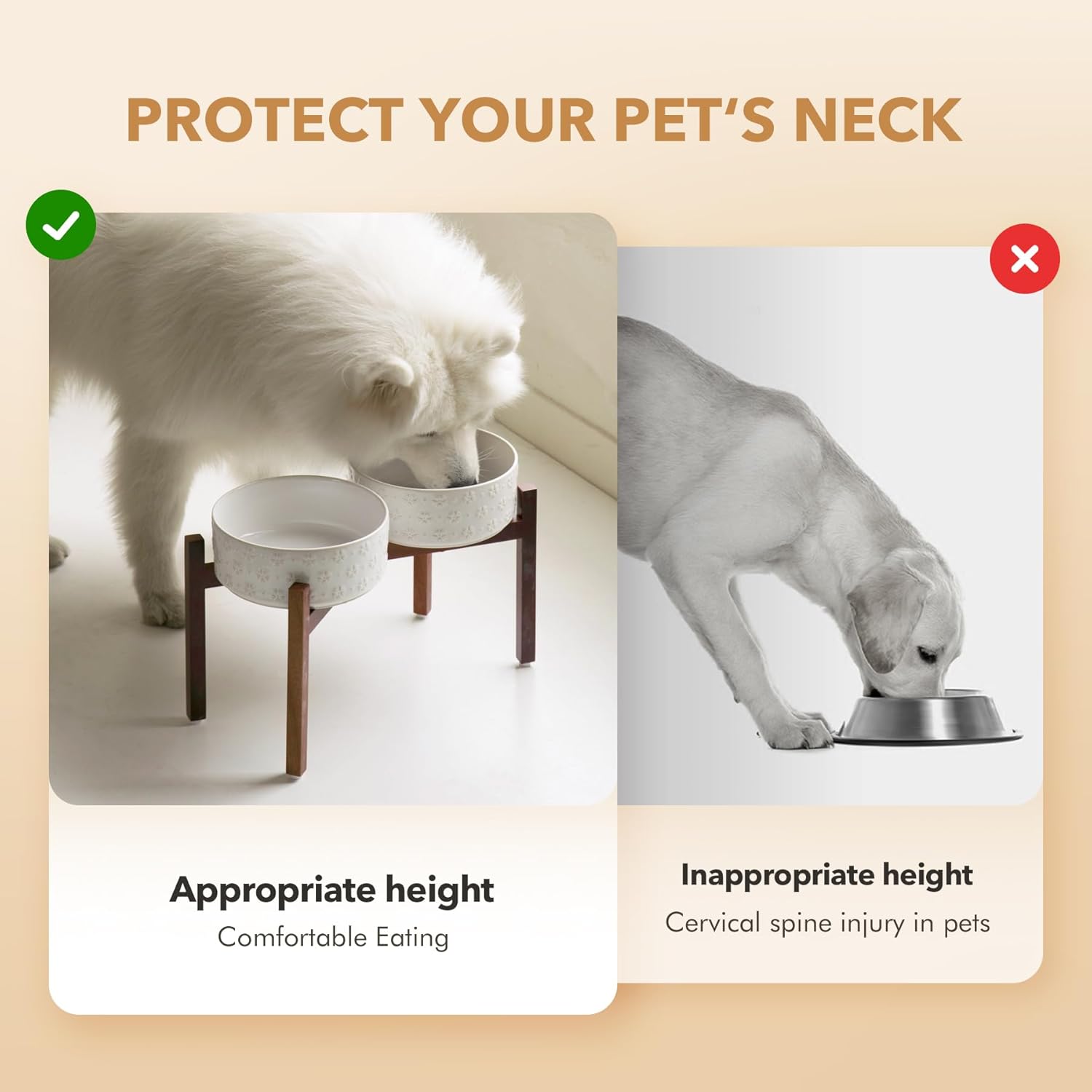 - Acacia Wood Stand: Adopting with classy acacia wood stand, this aesthetically pleasing ceramic dog bowls with stand fits perfectly with any home decor style. Raised ceramic dog bowls provide dogs with correct eating posture,improved reducing bloating and neck strain with dogs,and prevents indigestion problem.