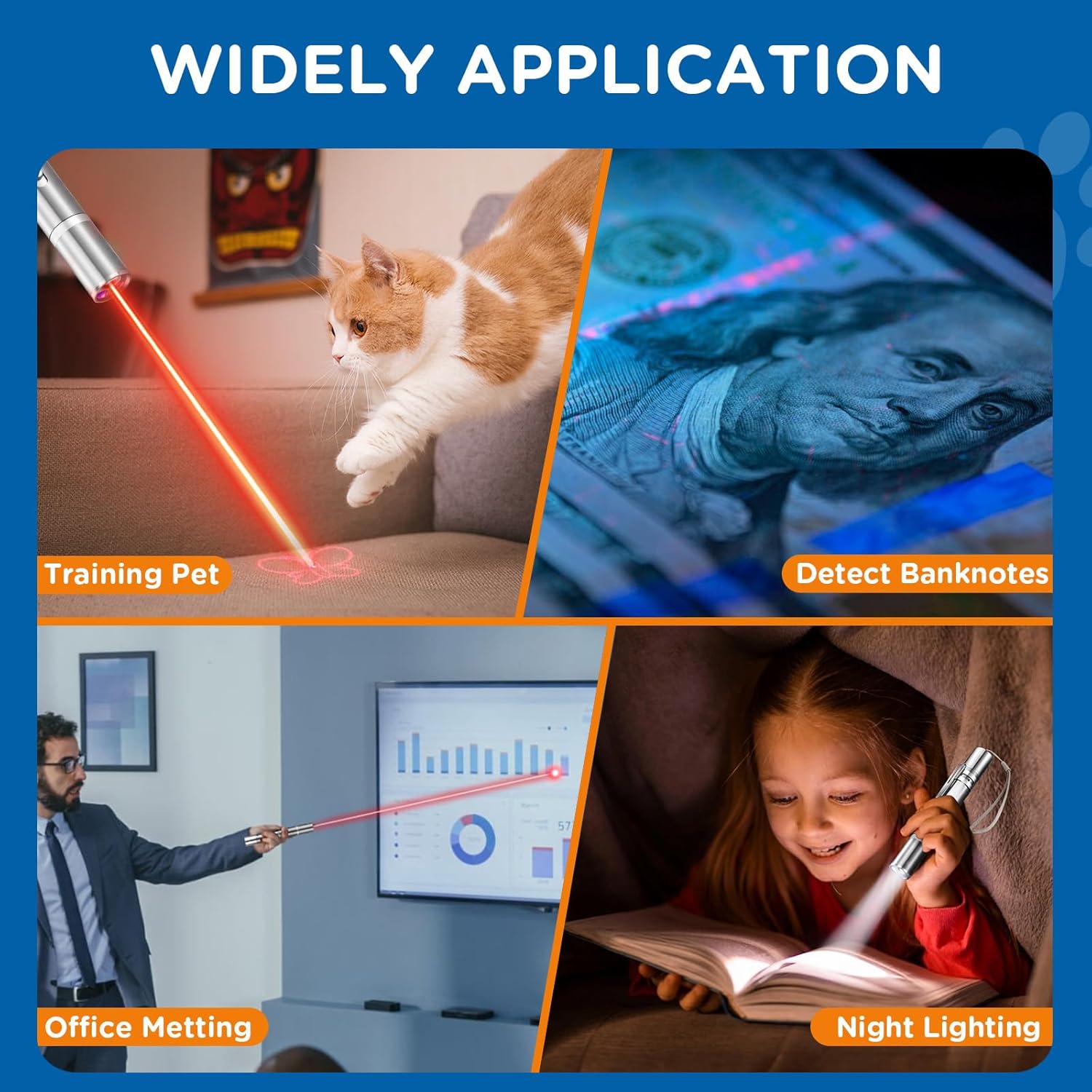 - 【Gifts for Your Pets】With this cat toy, your pet will not feel lonely, but also can enhance the relationship between you and your pet, It's the best gift for pets. What's more, you can turn on the switch with a single press instead of holding down on the button to keep lighting like most other cat flashlight do.