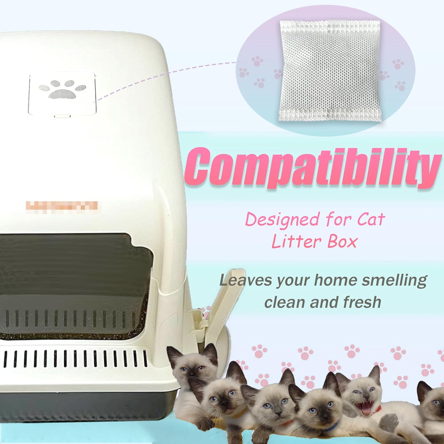 - 😺Compatibility: Odor eliminator is designed for Hooded Cat Litter Box, set of 12 pieces, activated carbon charcoal bags can trap urine and feces odors in their pores so your home smells clean and fresh.