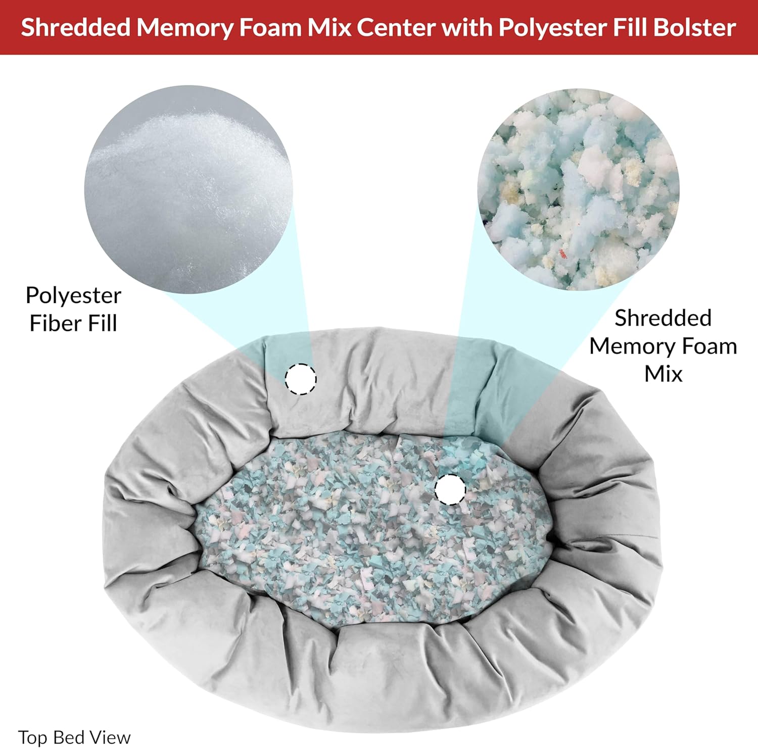 - [Ultimate Comfort with Shredded Memory Foam] Crafted with premium shredded memory foam, our dog bed conforms to your pet’s shape, easing joint pressure and promoting restorative sleep. The round donut shape offers a cozy, inviting space, ensuring every nap is blissfully comfortable and supports natural sleep positions with our dog beds x-large sized dog. This shredded memory foam center cushion with polyester fiber fill bolster dog bed gives them the comfort they’ll never want to leave!