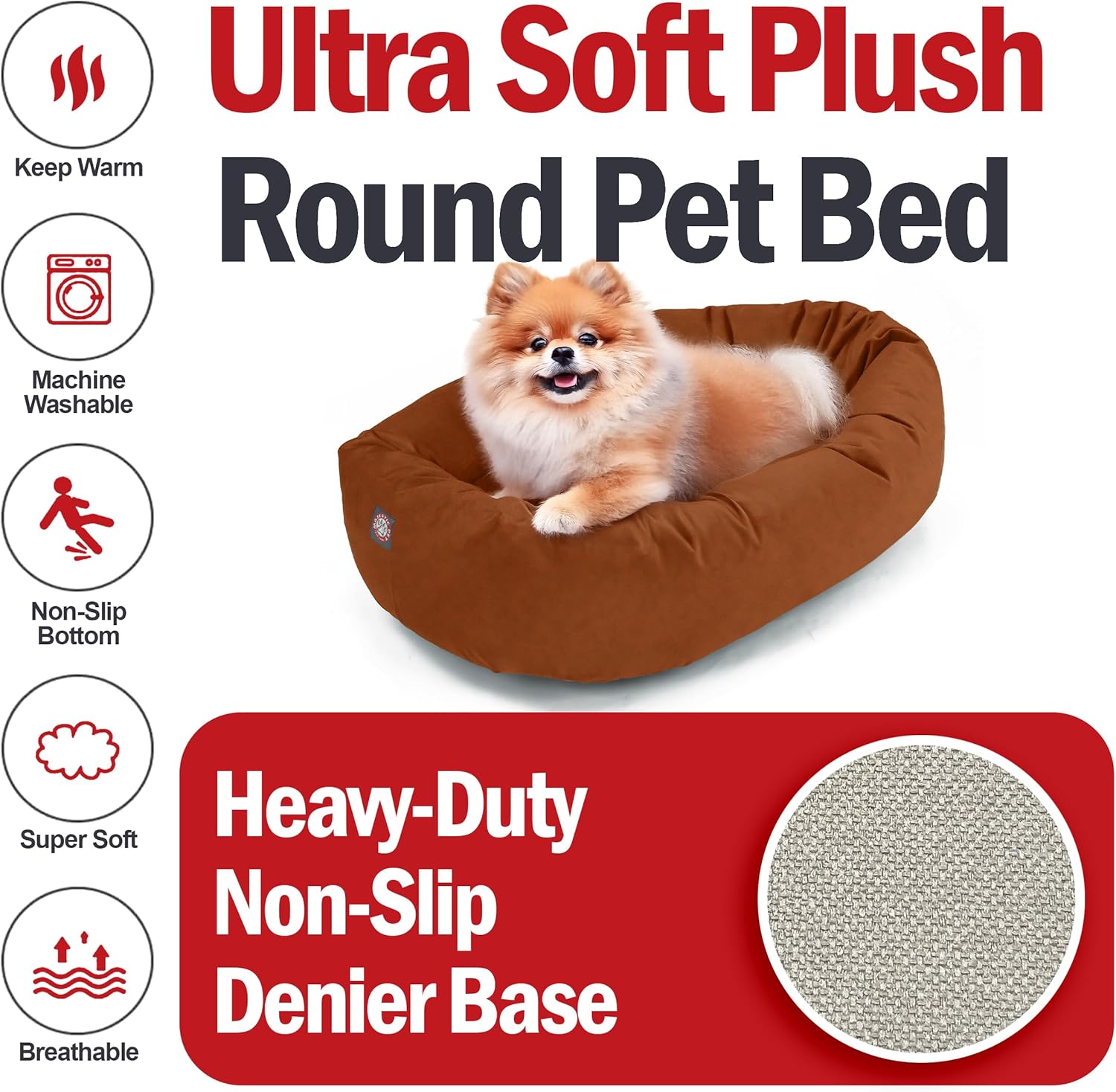 Majestic Pet 24 Inch Suede Shredded Memory Foam Mix Calming Small Dog Bed Washable 24 x 19 x 7 (Inch) - Cozy Soft Round Donut Dog Bed with Spine for Head Support - Pet Bed Rust