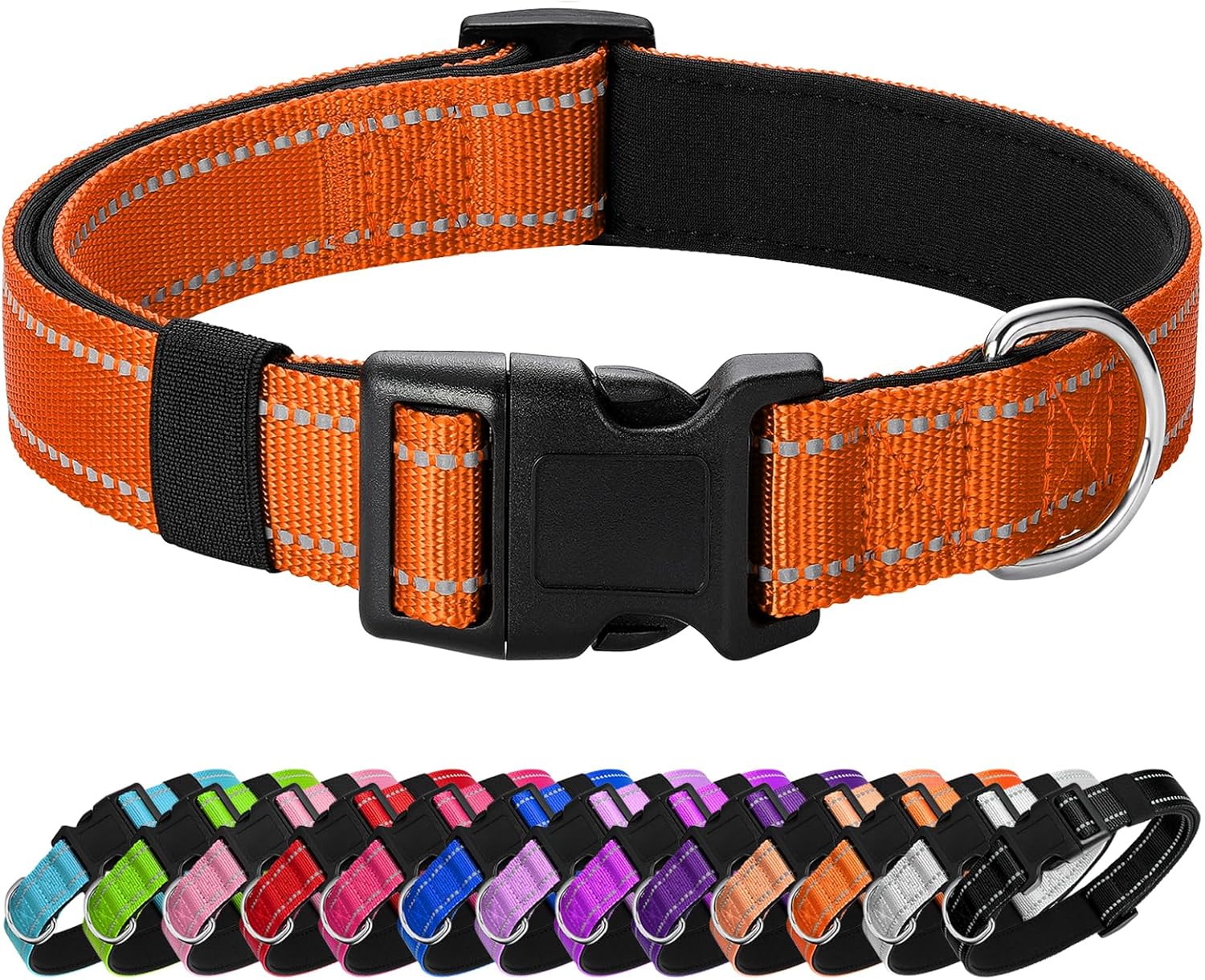 Reflective Dog Collar Padded with Soft Neoprene Breathable Quick Release Basic Dog Collars for Medium Large Dogs Orange